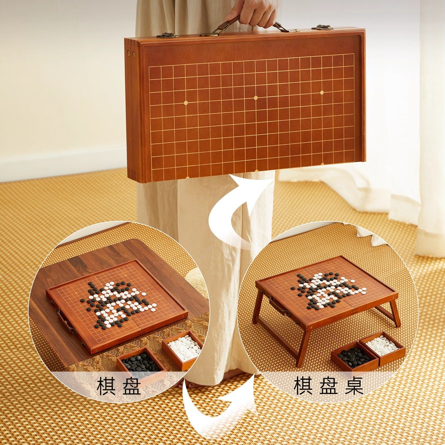 围棋棋盘套装五子棋二合一标准成人儿童户外可折叠实木桌高档送礼