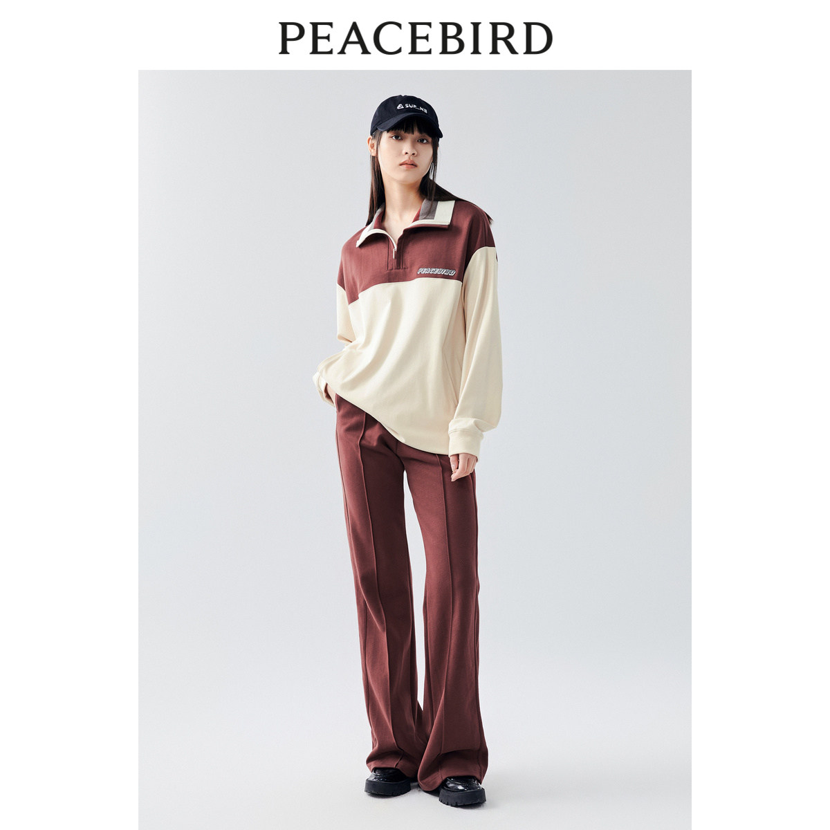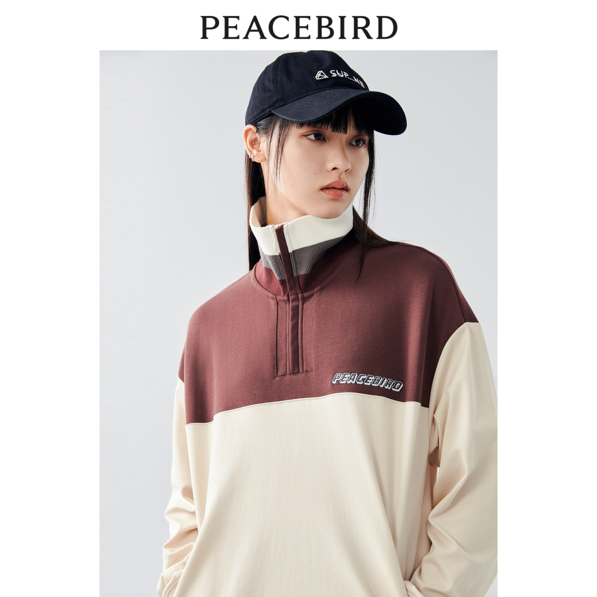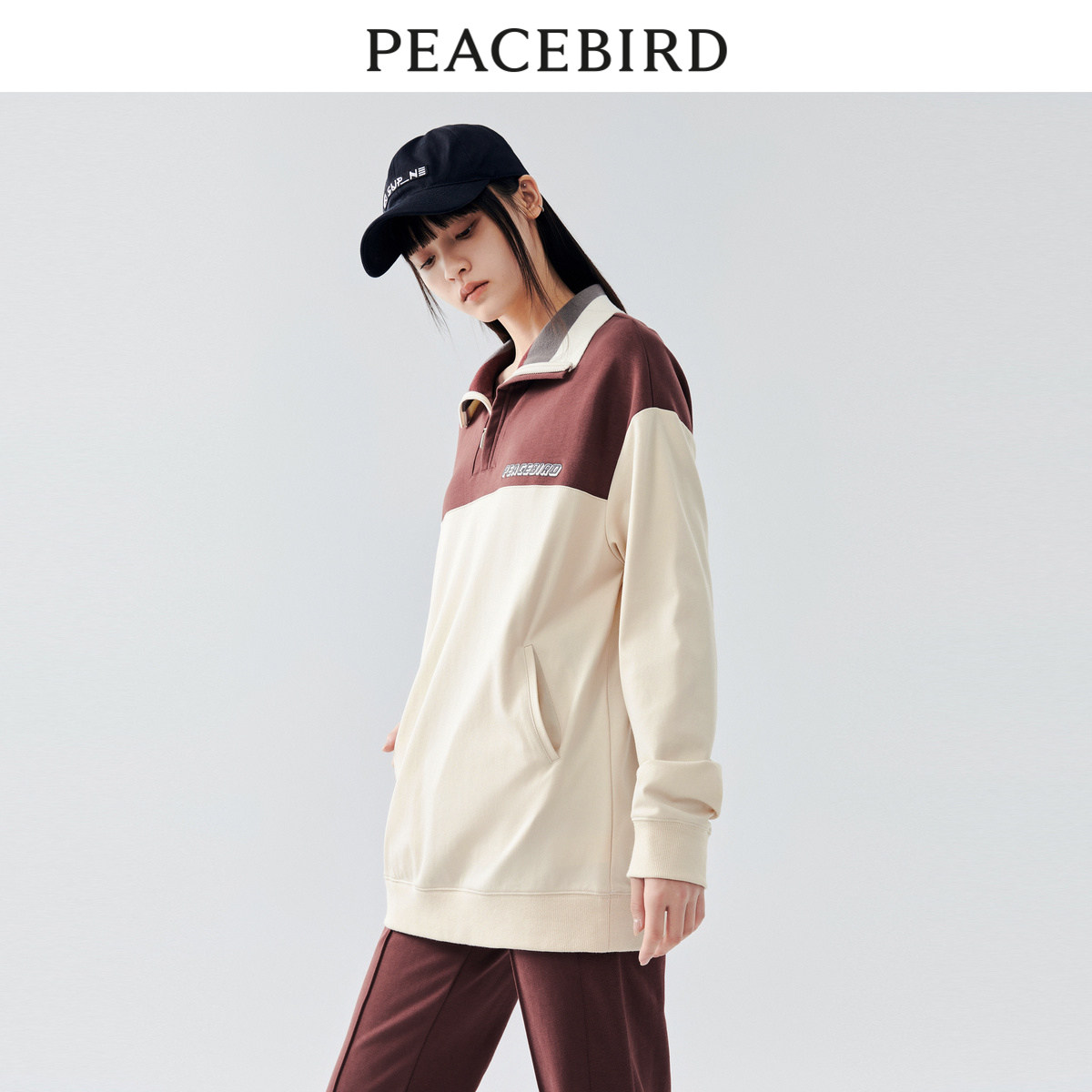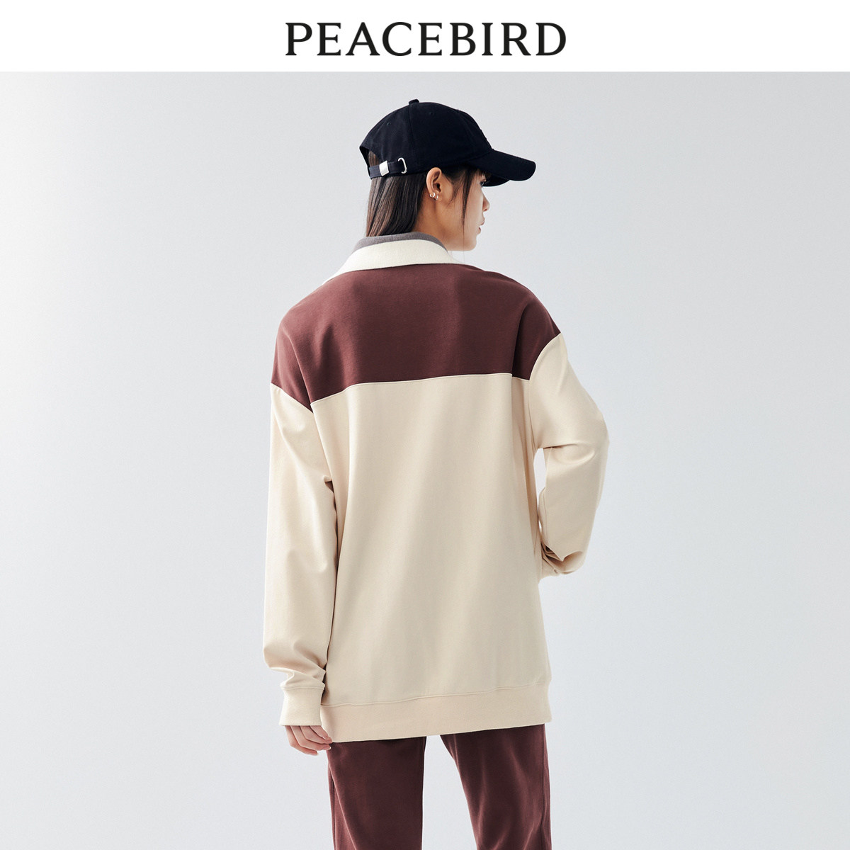 太平鸟女装 秋季POLO领卫衣拼接撞色半拉链套头上衣女士