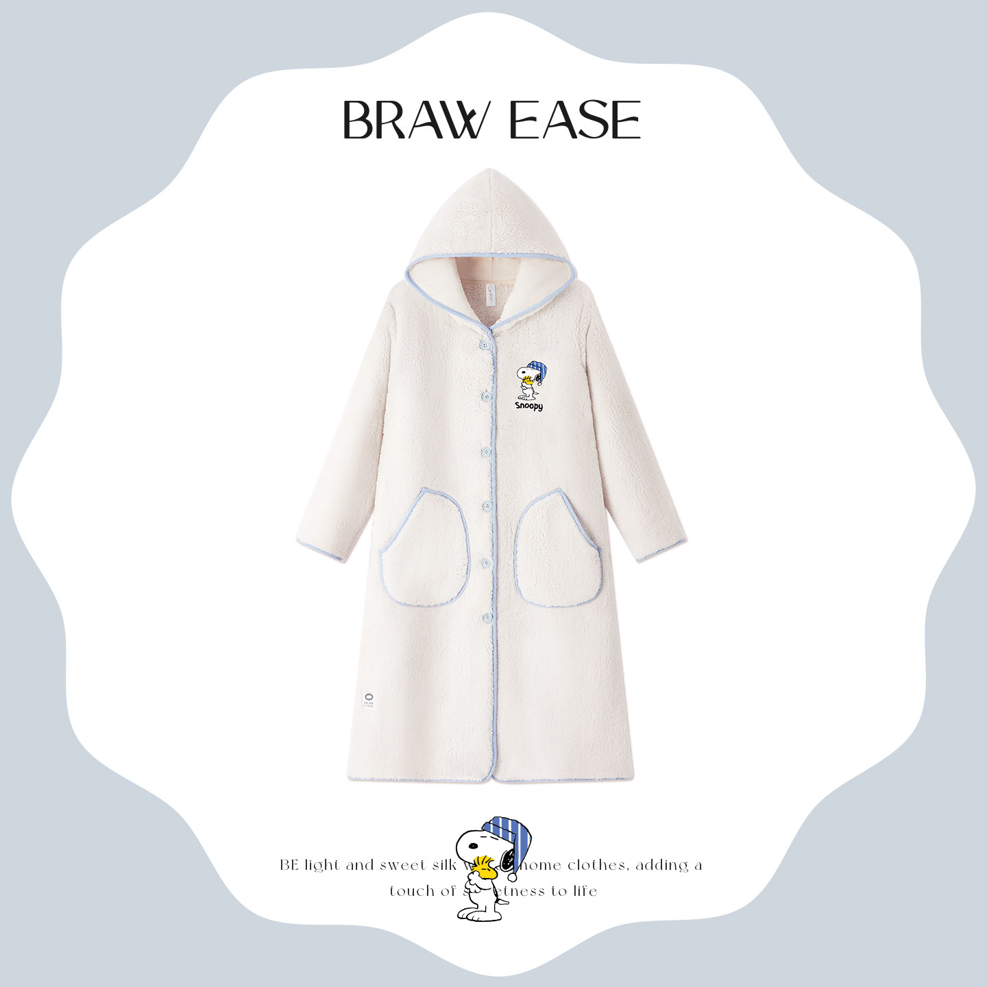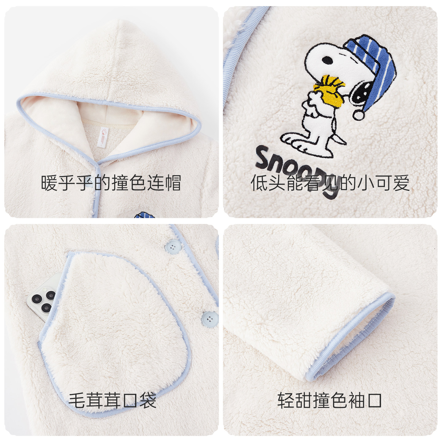 史努比珊瑚绒冬季睡袍女款长袍加绒加厚睡衣浴袍冬天可爱长款秋冬