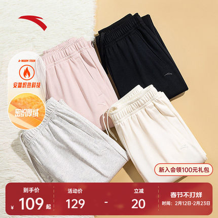安踏束脚裤丨加绒保暖针织运动长裤女裤冬季直筒运动裤休闲卫裤