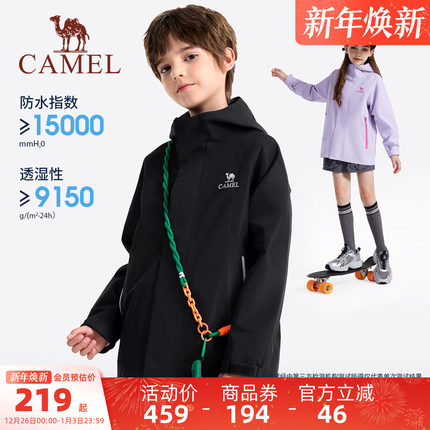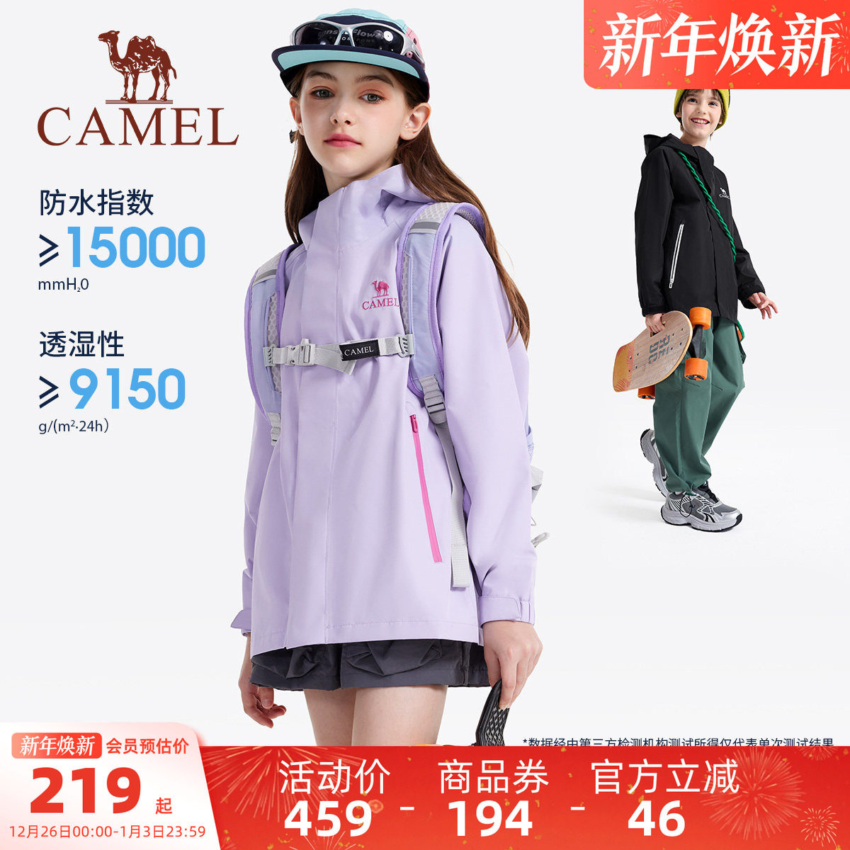 小骆驼儿童户外冲锋衣防风防水登山服旅行徒步风衣男女童单层外套