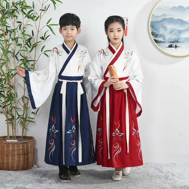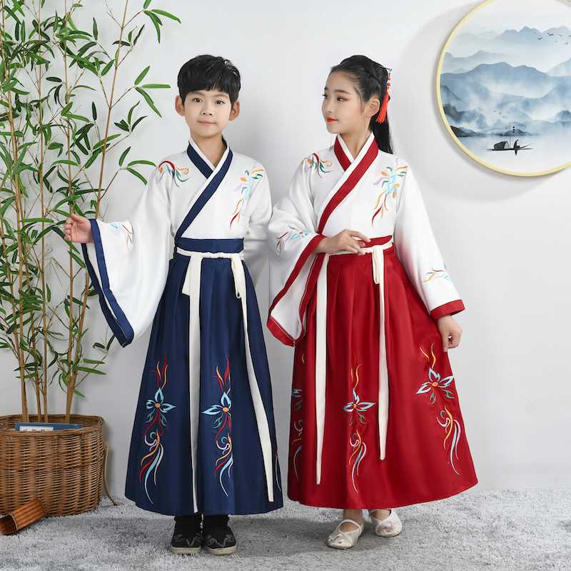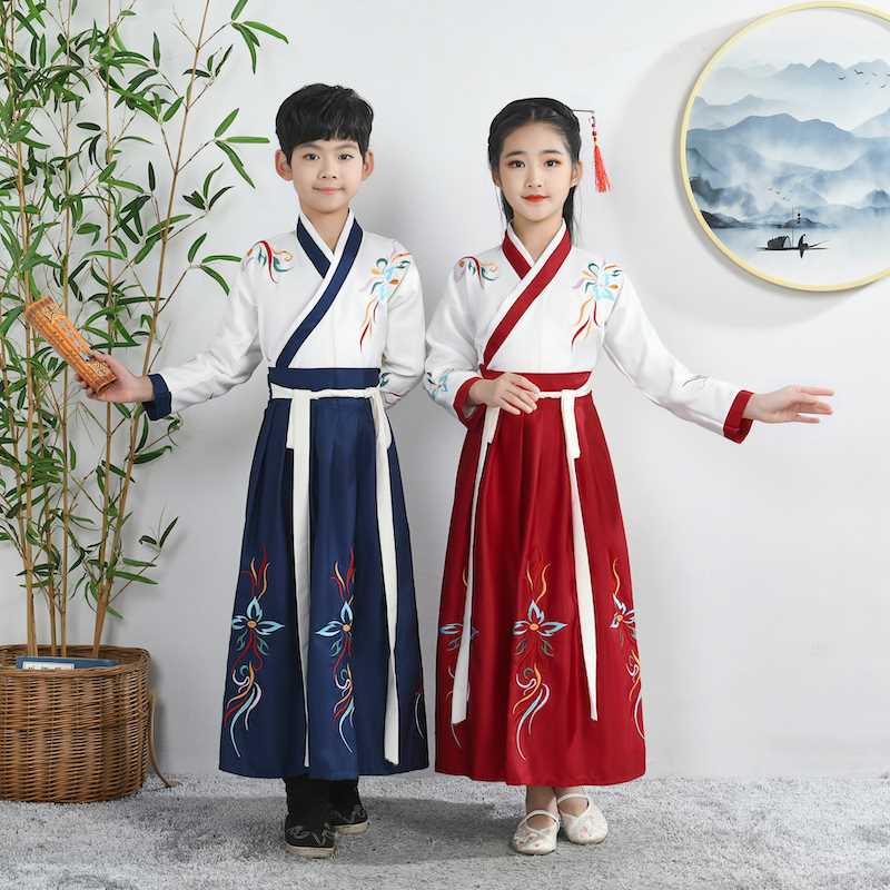 儿童国学汉服中国风学生古装朗诵三字经男女书童弟子规合唱演出服