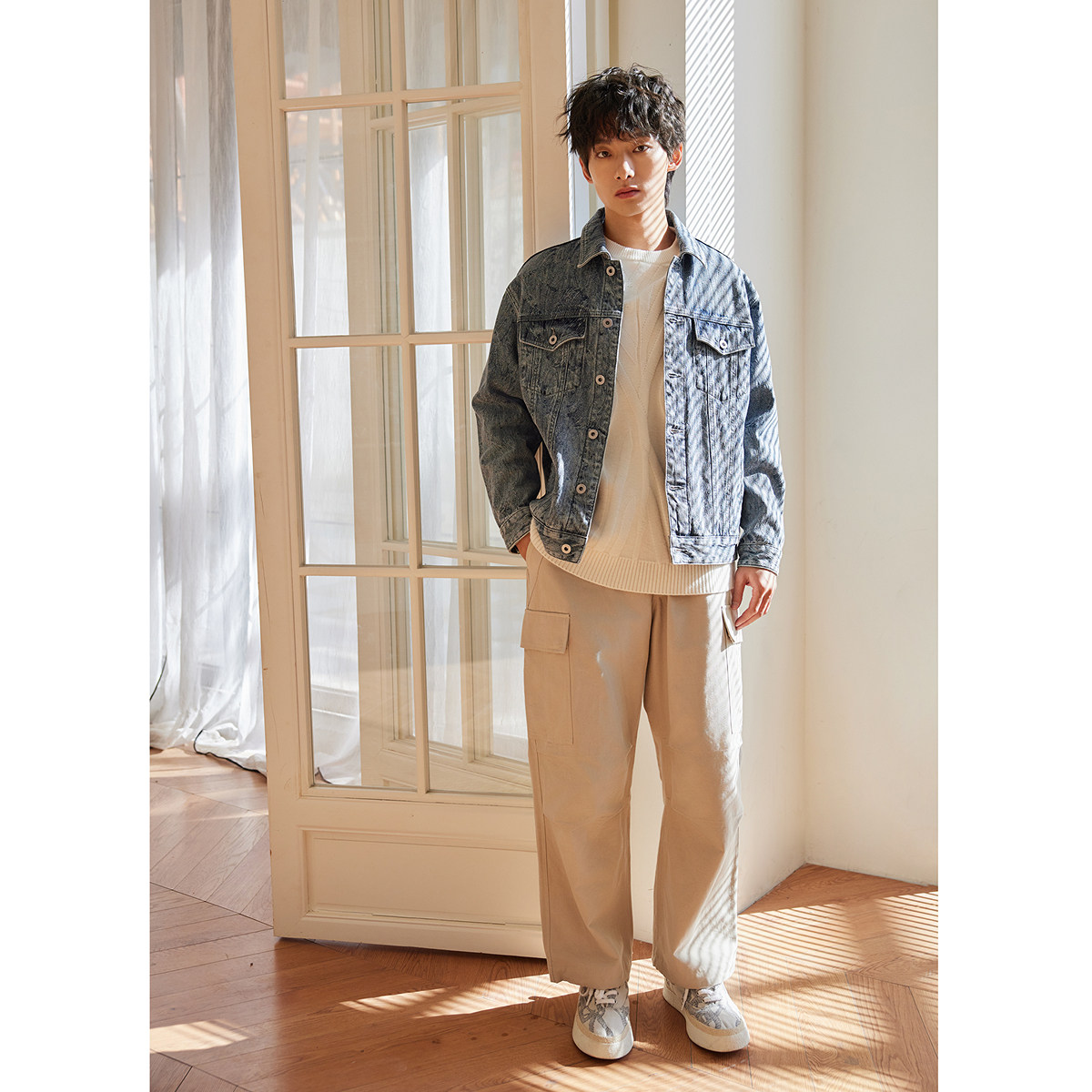 【断码钜惠】太平鸟男装春季牛仔夹克外套B2BJE1110