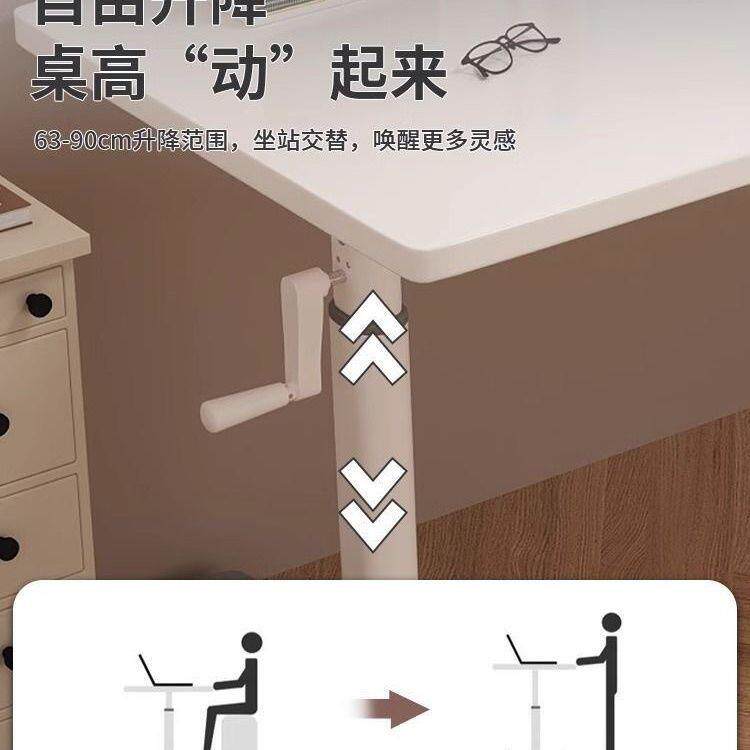 AIC简约书写桌大宿舍桌子书桌学小手生可升降摇升降桌白桌手摇升