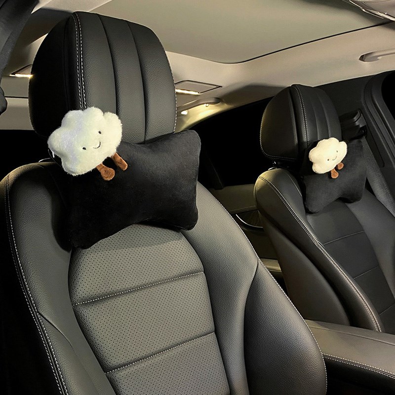可爱笑脸云朵汽车坐垫无靠背创意卡通座椅垫通用毛绒车垫小三件套