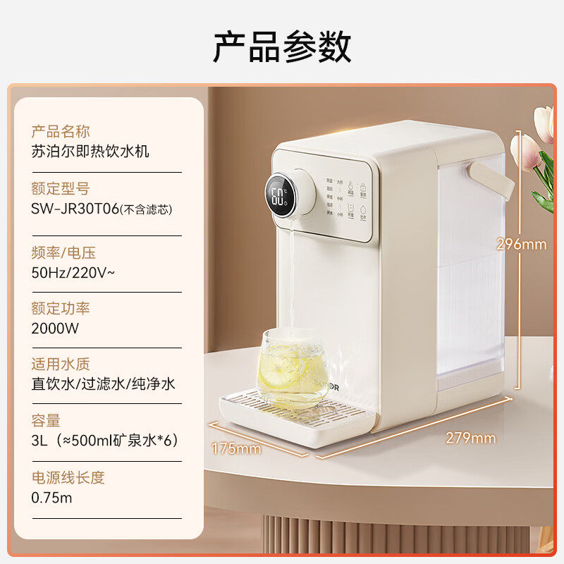 苏泊尔即热式饮水机 3L大容量 1S速热家用桌面台式小型直饮机
