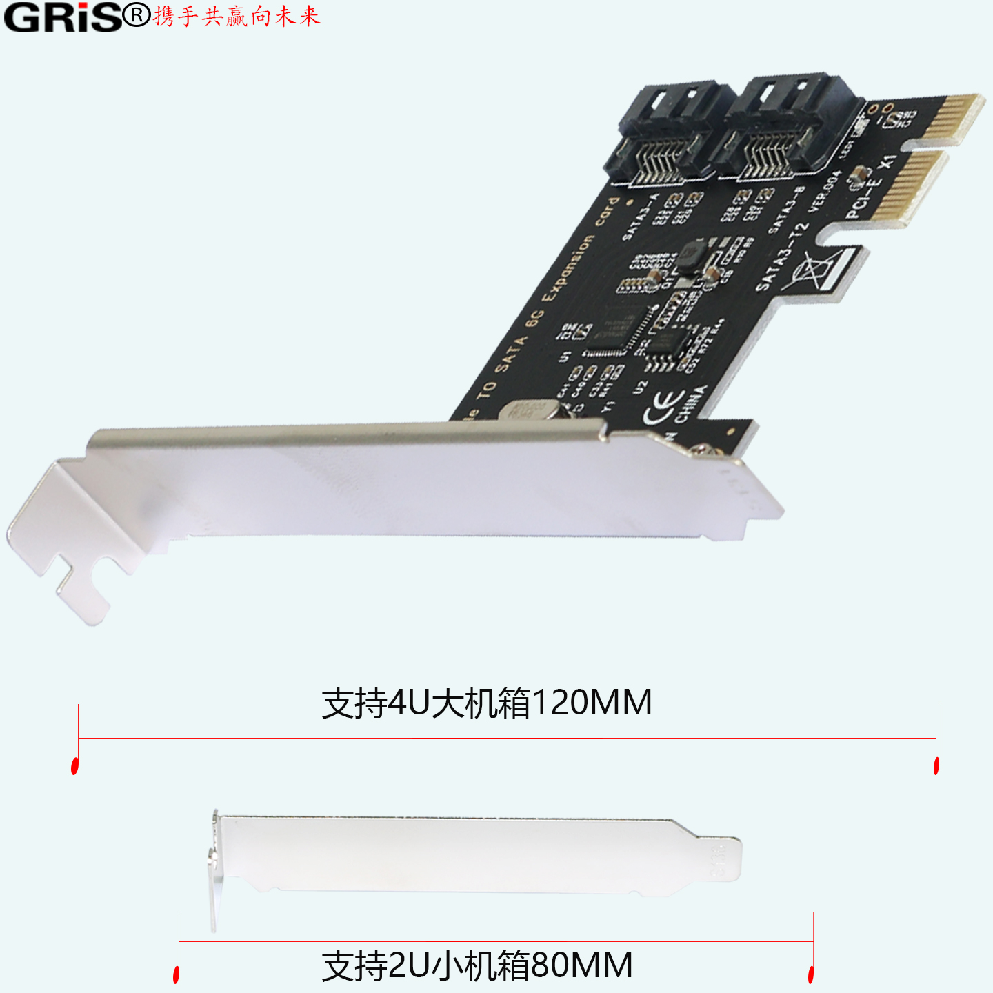 GRIS 双口PCI-E转SATA3.0扩展卡6G高速电脑SSD固态硬盘存储台式机服务器Serial ATA原生AHCI不支持raid阵列卡