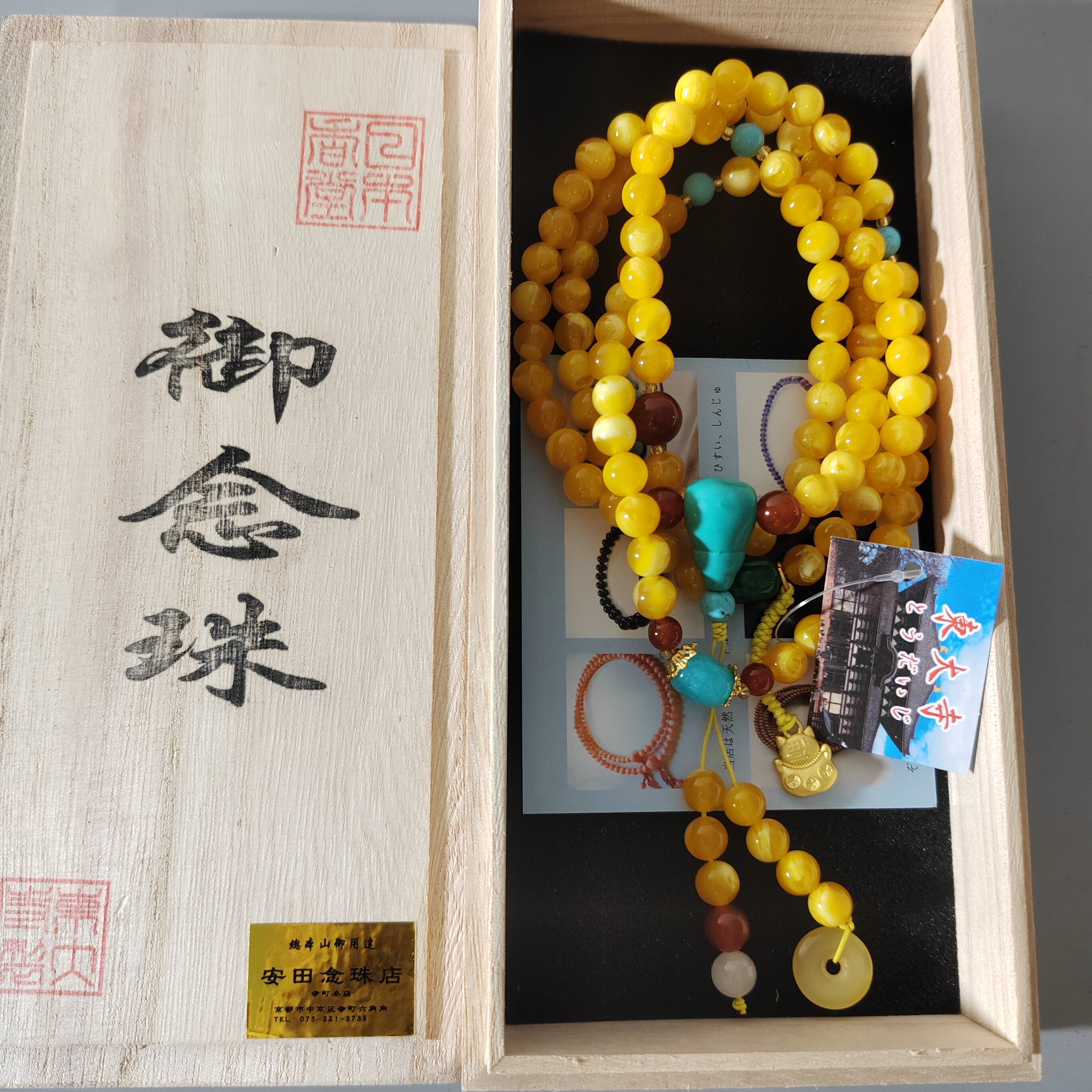 日本东大寺御念珠天然蜜蜡手串琥珀项链108颗佛珠男女士手链项链