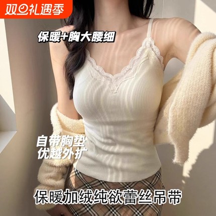 蕾丝吊带背心女保暖内衣带胸垫一体2025新款秋冬内搭可外穿打底衫