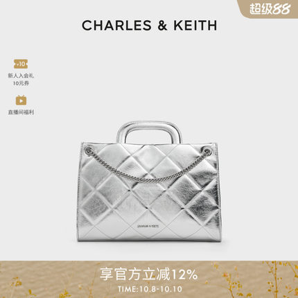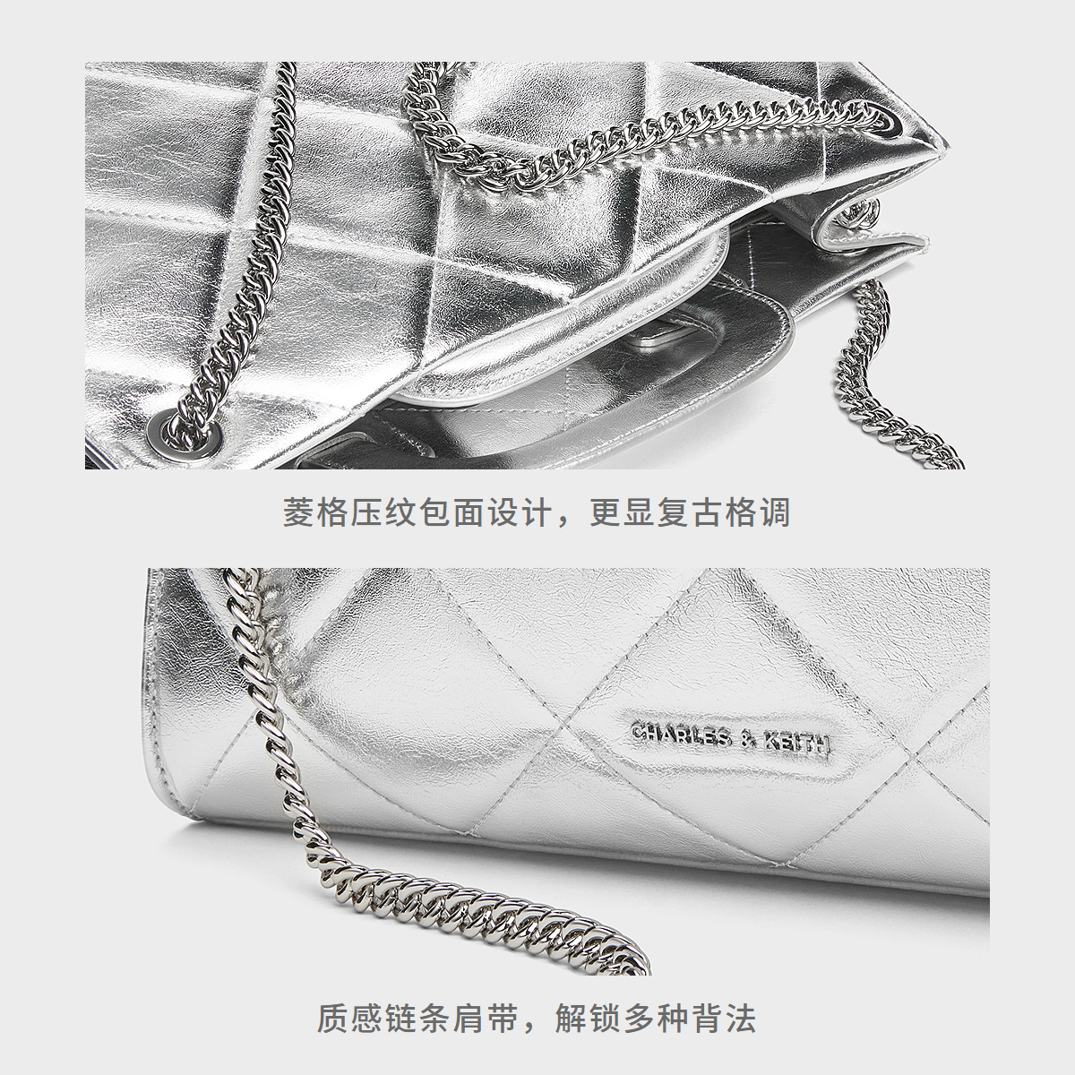 CHARLES&KEITH秋季女包CK2-30271420简约菱格链条包斜挎单肩包女