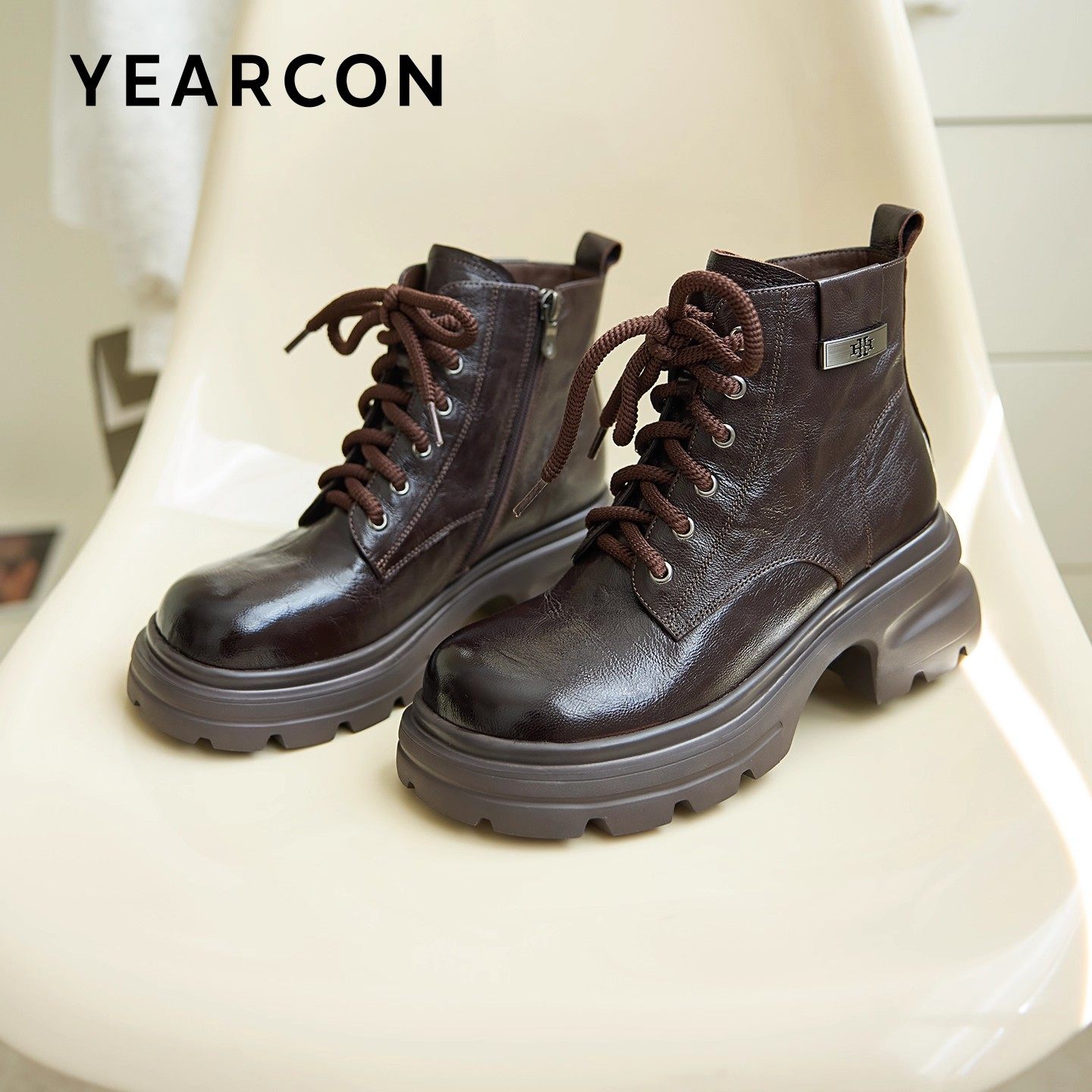 意尔康羊皮马丁靴女2025冬新款小个子厚底英伦风复古短靴真皮女靴