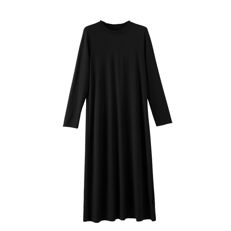 晚白2025年秋新款圆领内搭单穿宽松裙子简约干练百搭长袖连衣裙