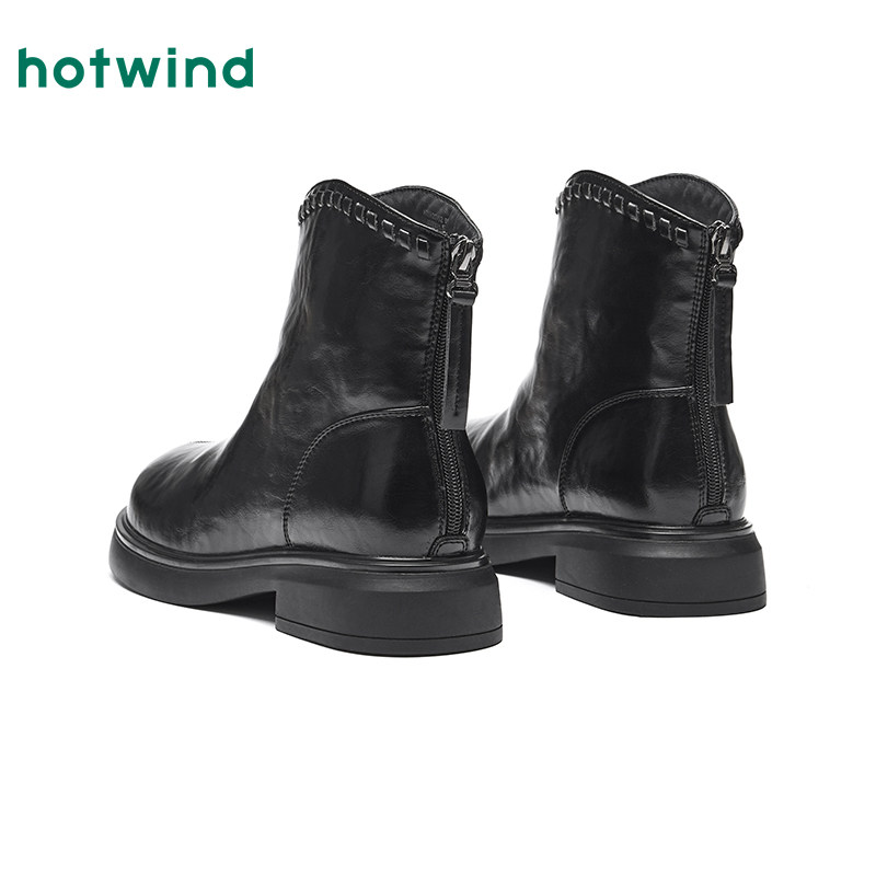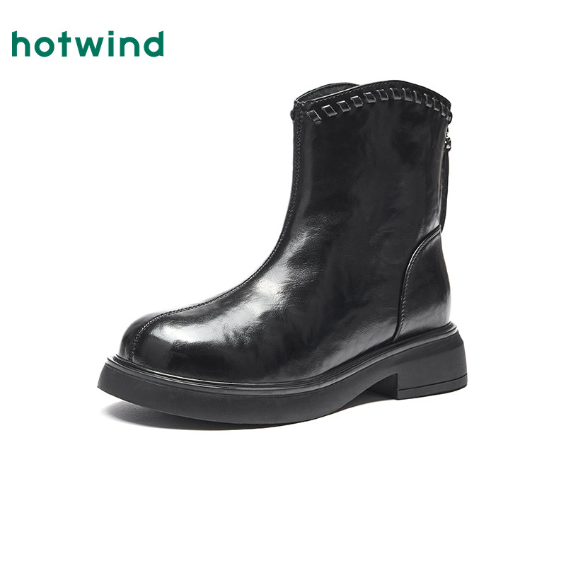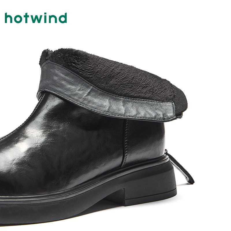 热风黑色短靴女款2025年冬季新款百搭时装靴厚底增高加绒女靴子