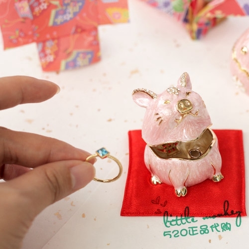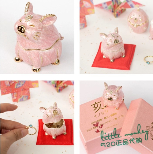 日本代购 小猪 精致可爱十二生肖公仔首饰小物收纳盒摆件