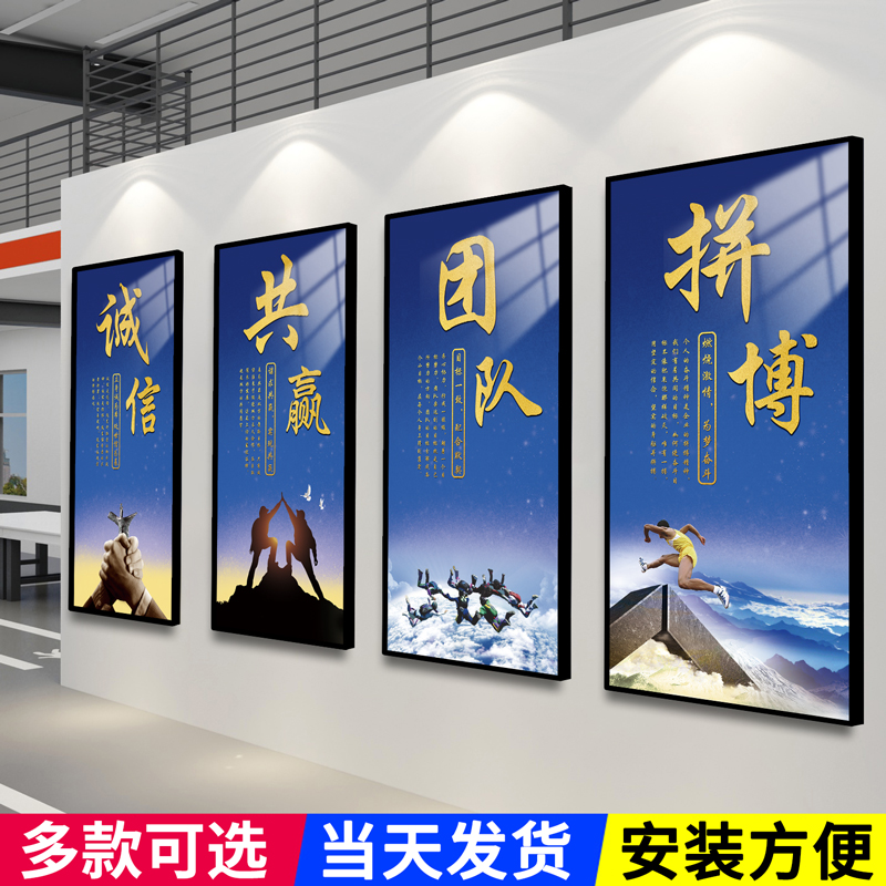 企业文化墙办公室墙面装饰挂画会议室销售团队励志标语贴画布置