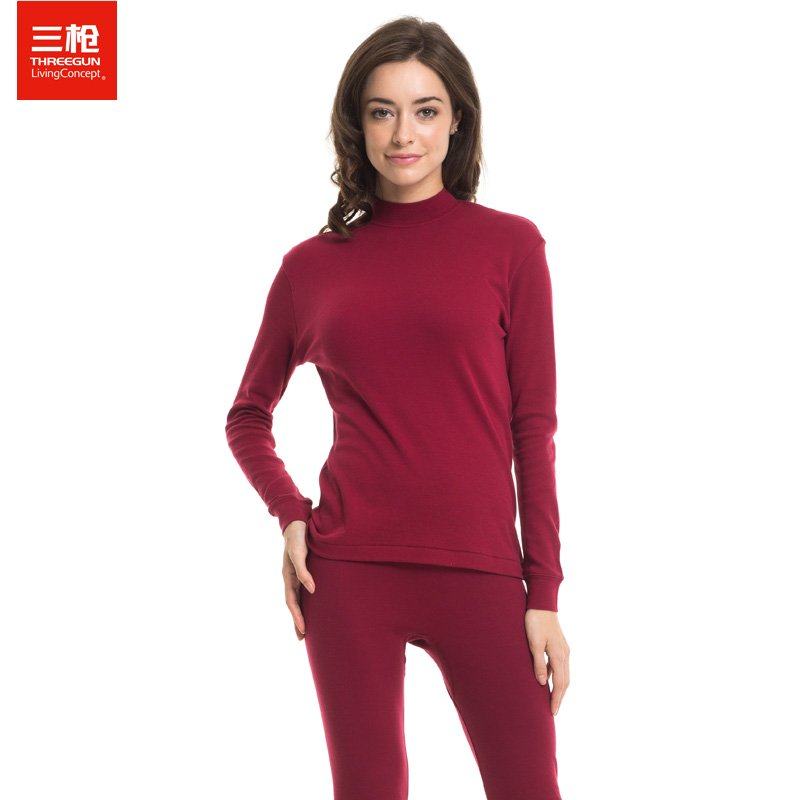 三枪女单件全棉半高领秋衣上衣
