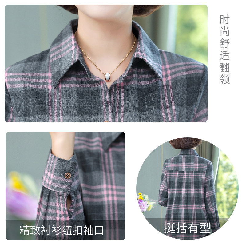 妈妈秋装长袖格子衬衫中年妇女