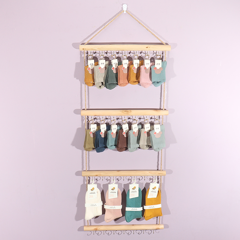 创意袜子展示架上墙挂壁式袜架带夹子挂架收纳架服装店原木饰品架
