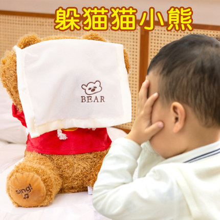 婴儿电动毛绒小熊会说话唱歌的躲猫猫玩具专注力训练宝宝练习抬头
