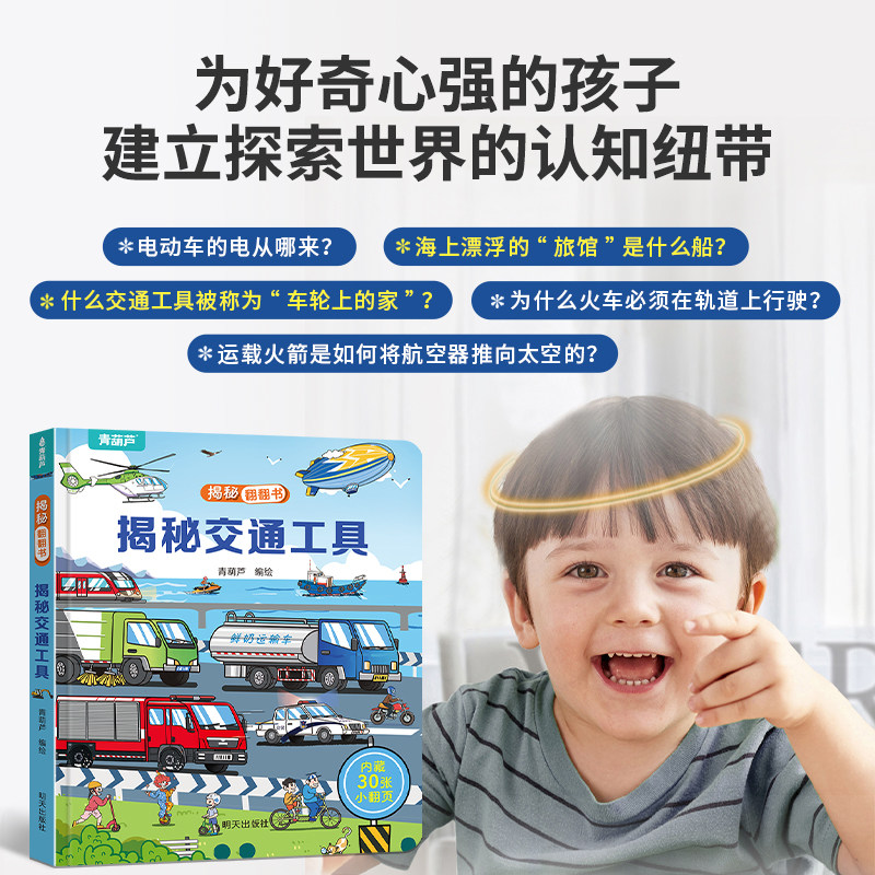 揭秘翻翻书 揭秘交通工具儿童科普启蒙绘本0到3岁幼儿故事书汽车百科1一3宝宝撕不烂翻翻书洞洞书婴儿早教1-2岁适合一岁半两岁书籍