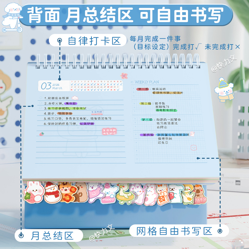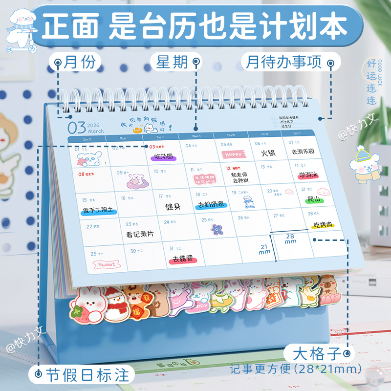 台历2026年新款日历摆件可爱卡通异形迷你学生文艺台历本25年办公