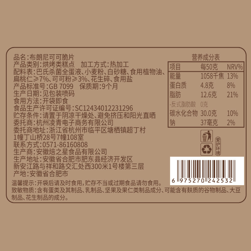 卡豪佳脆皮巧克力布朗尼坚果芙饼干128gx1盒早餐儿童休闲小吃零食