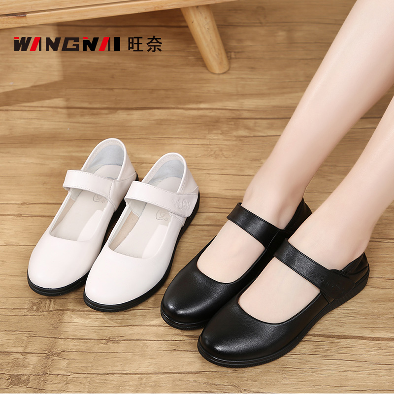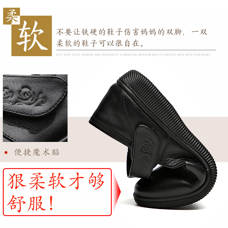 真皮中老年妈妈鞋平底大码女单鞋一字带防滑老人鞋软底护士工作鞋