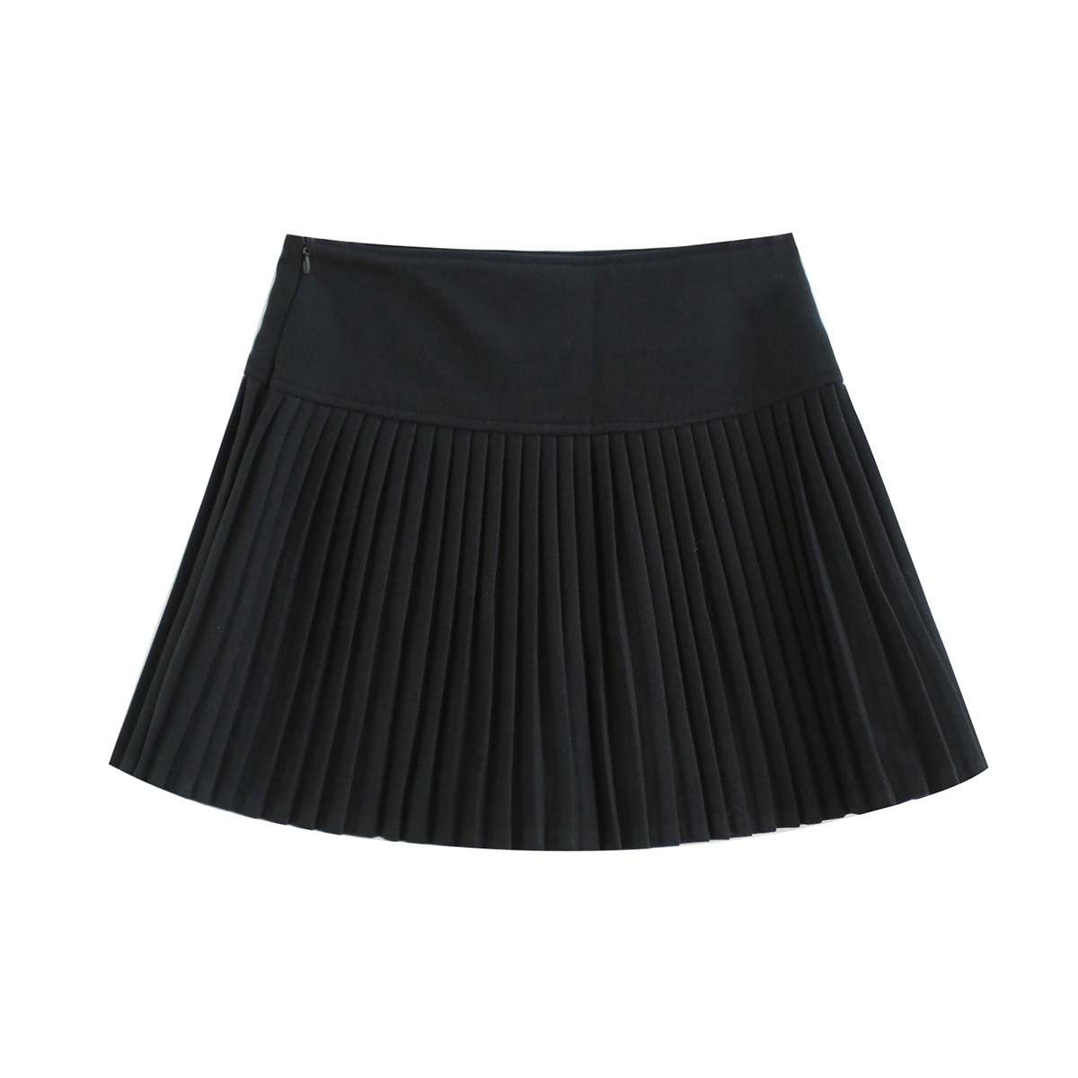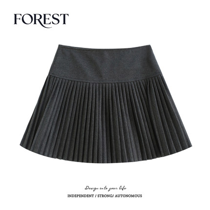 拾野森高腰毛呢百褶裙半身裙