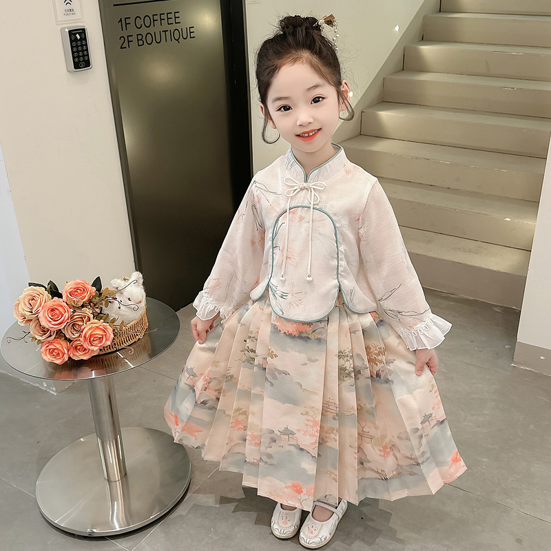 女童连衣裙春秋洋气儿童新中式国风汉服小女孩马面裙套装秋款裙子