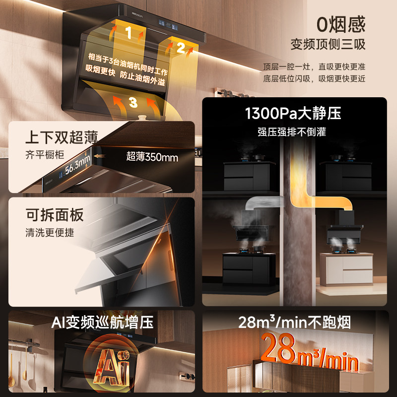 帅康新款顶侧三吸变频7字型抽油烟机厨房旗舰店Y856/Y857