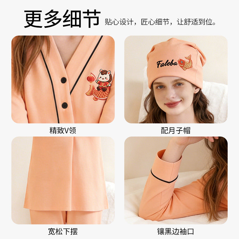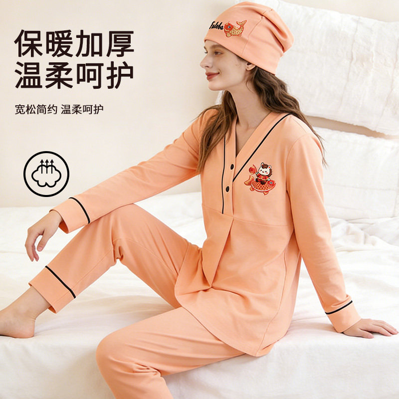 带胸垫月子服纯棉全棉吸汗哺乳睡衣孕妇冬加厚款产妇家居服秋冬季