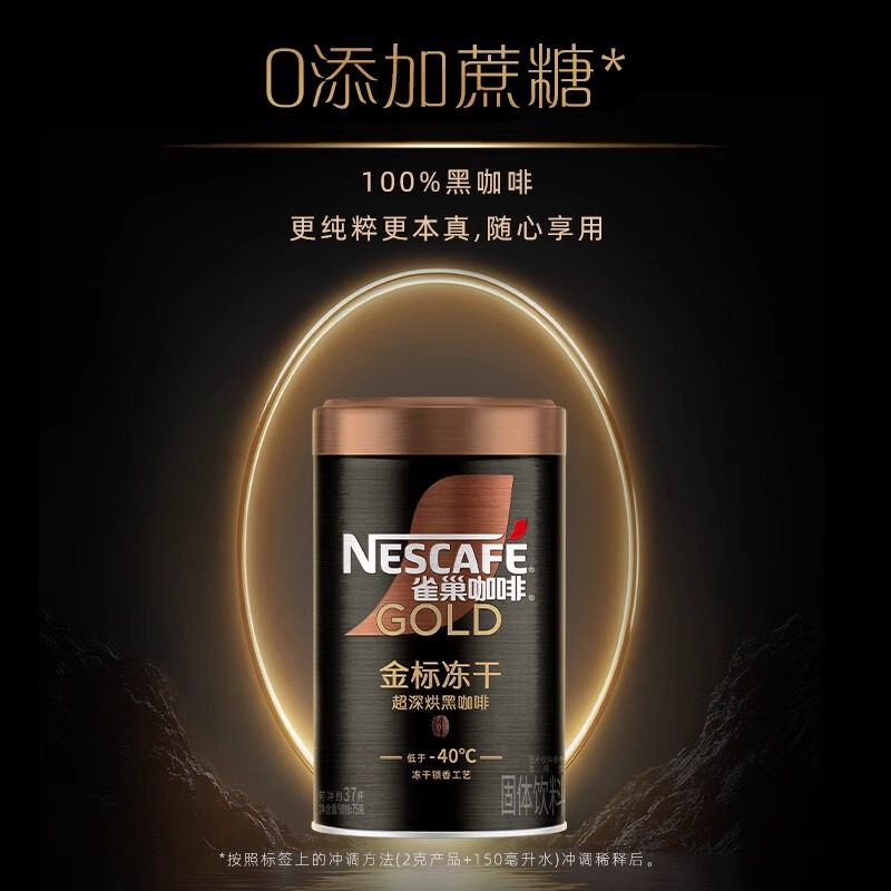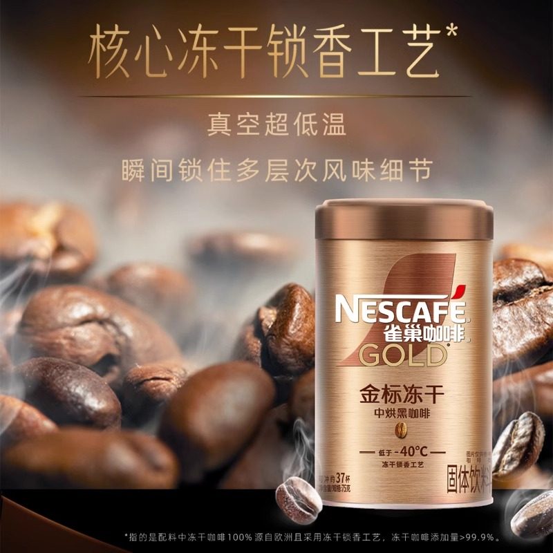 雀巢超深烘速溶咖啡粉金标冻干美式冷热即溶黑咖啡75g罐提神正品