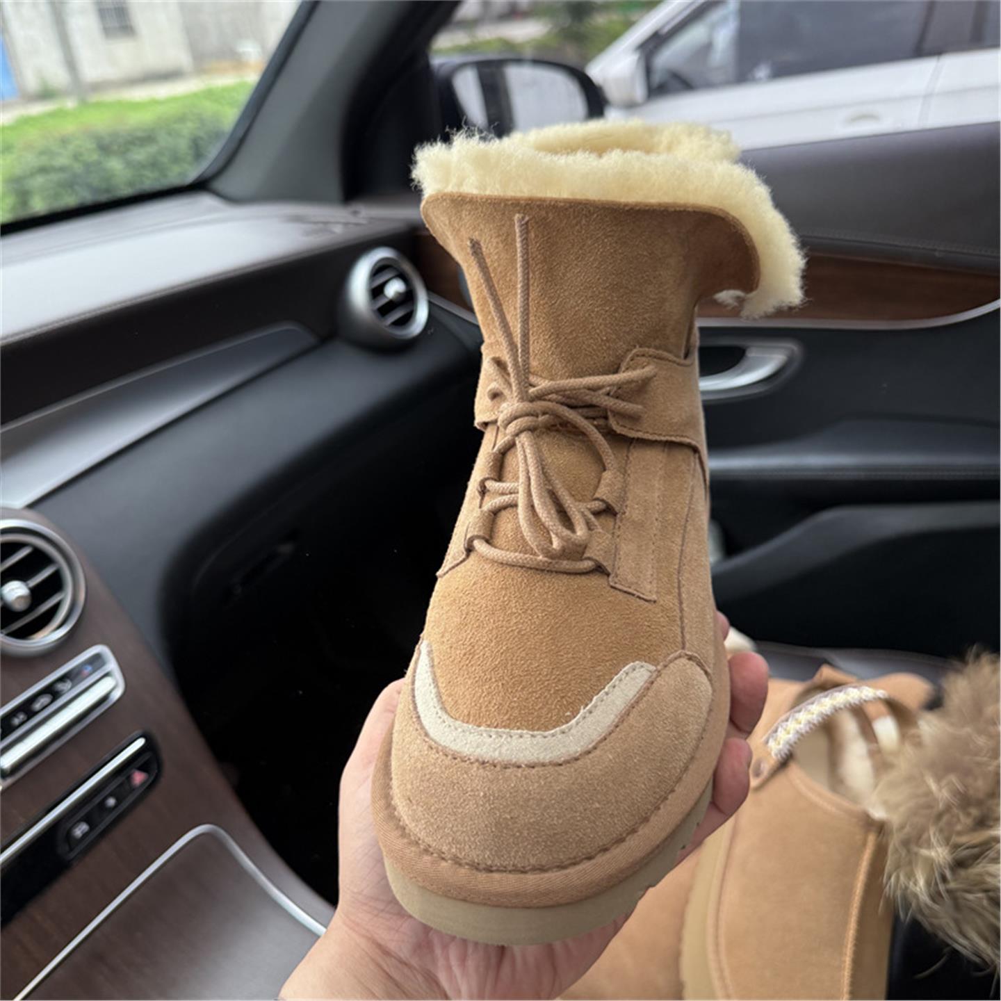 新款羊毛系带雪地靴女皮毛一体保暖马丁靴加绒加厚防滑东北短靴子