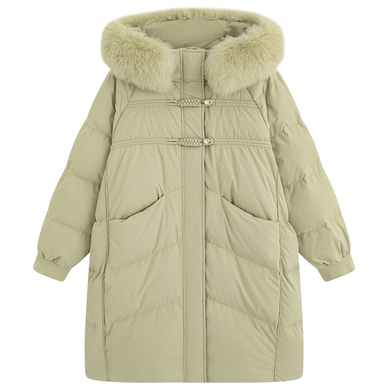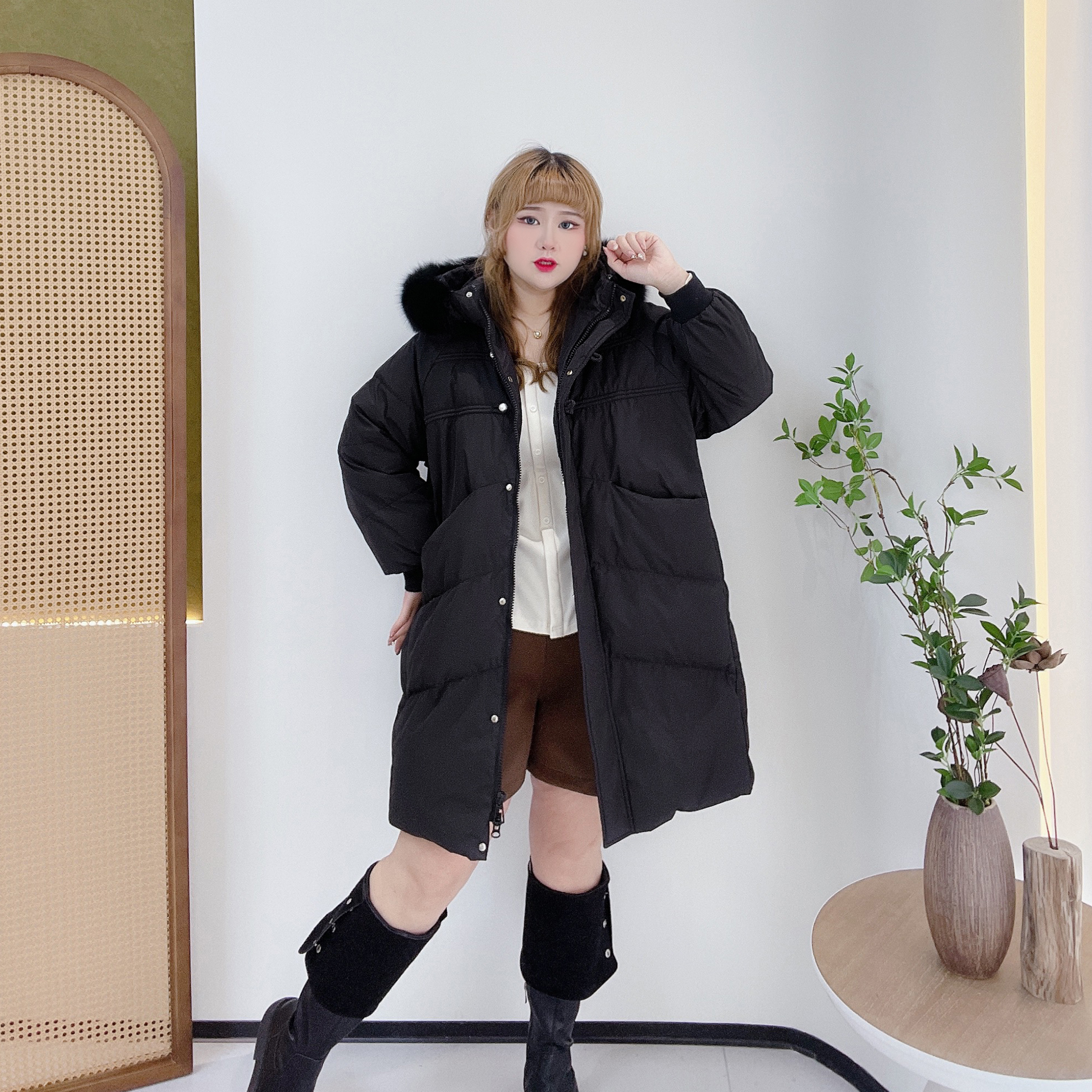 300斤大码羽绒服大毛领宽松加厚清新中国风加肥保暖抗寒长款外套