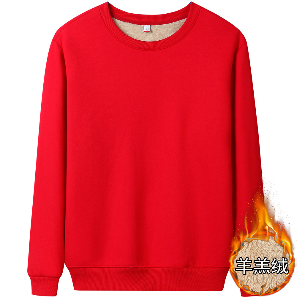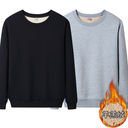 加绒加厚卫衣女圆领冬2024新款冬季羊羔绒保暖圆领上衣定制纯色