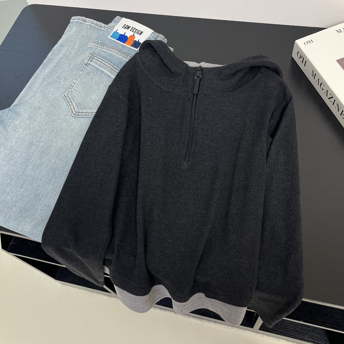 软糯加厚德绒假两件连帽套头卫衣女春秋宽松显瘦休闲长袖上衣