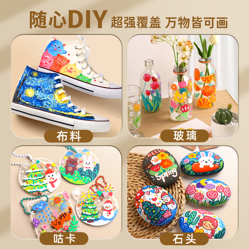 恩米儿童丙烯马克笔80色可叠色防水手绘diy画鞋24色48色速干彩色水彩笔36色12色丙烯笔颜料咕卡用学生
