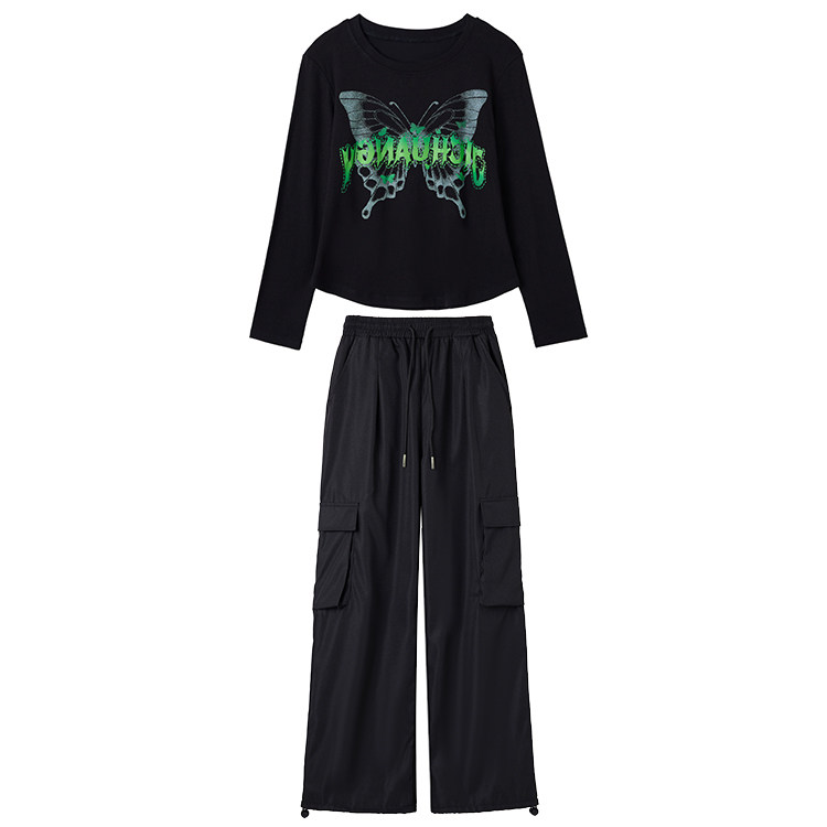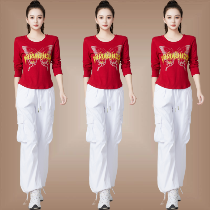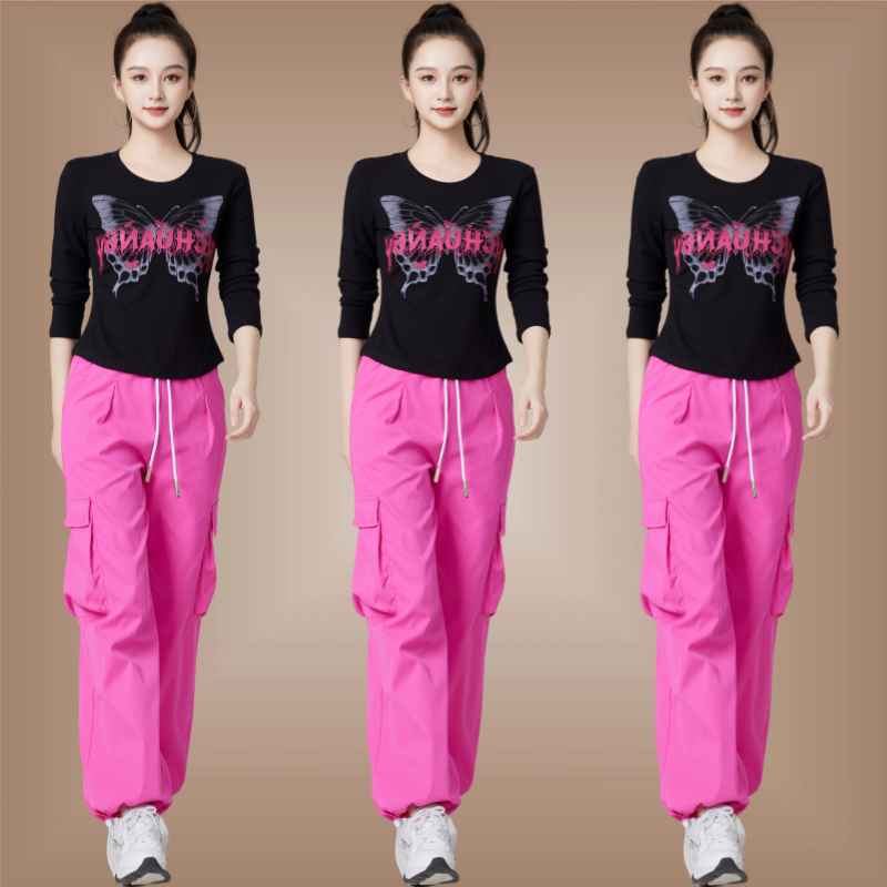 广场舞服装秋季新款长袖运动健身套装女军绿色工装裤水兵舞演出服