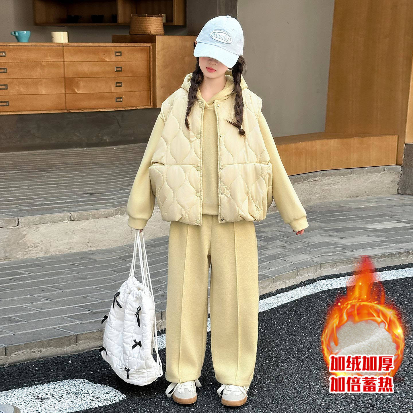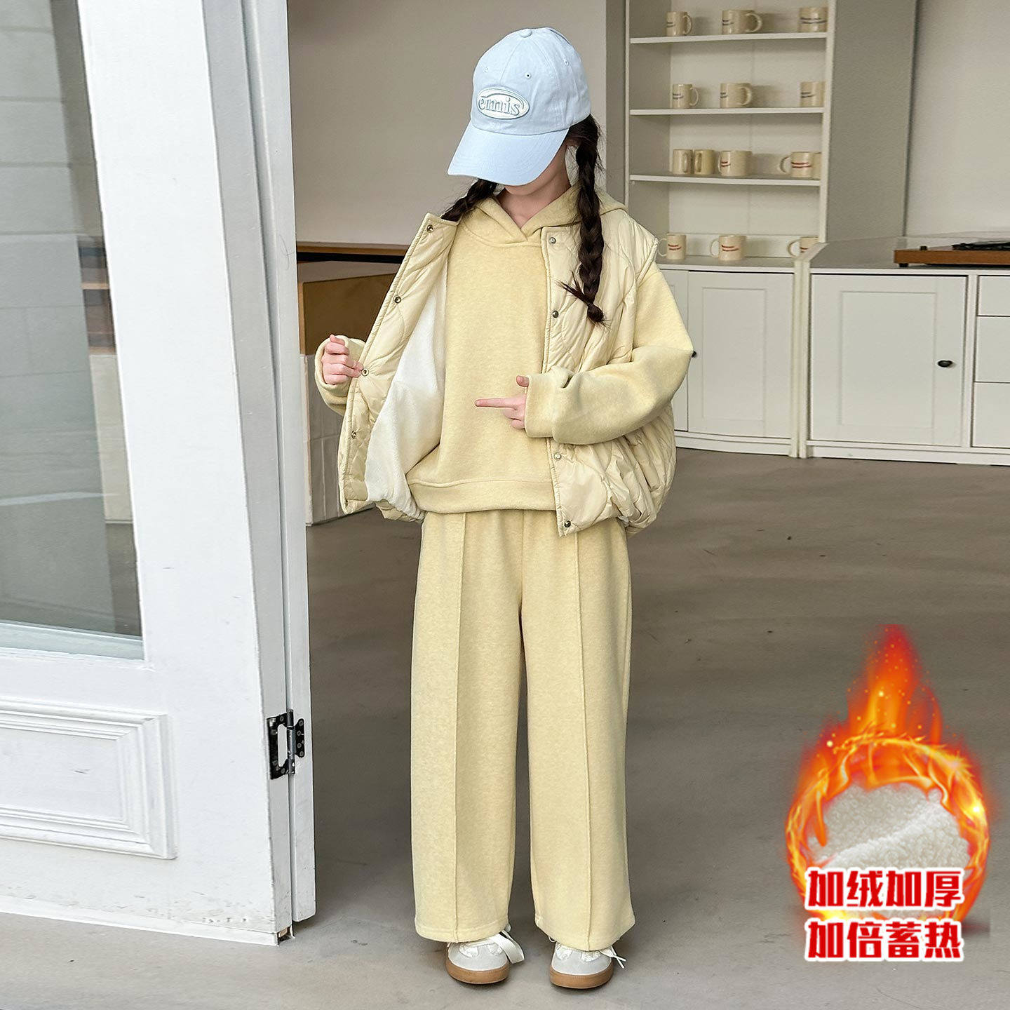 女童秋冬款加绒加厚卫衣套装2025新款洋气中大童韩系马甲三件套潮