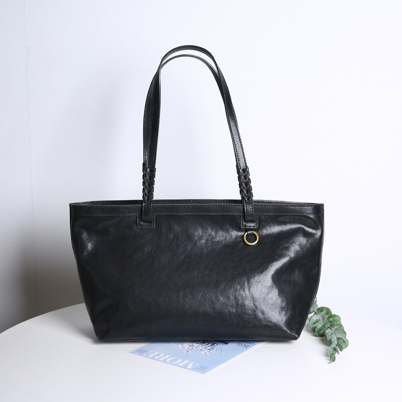 高级感真皮手提包复古通勤托特包