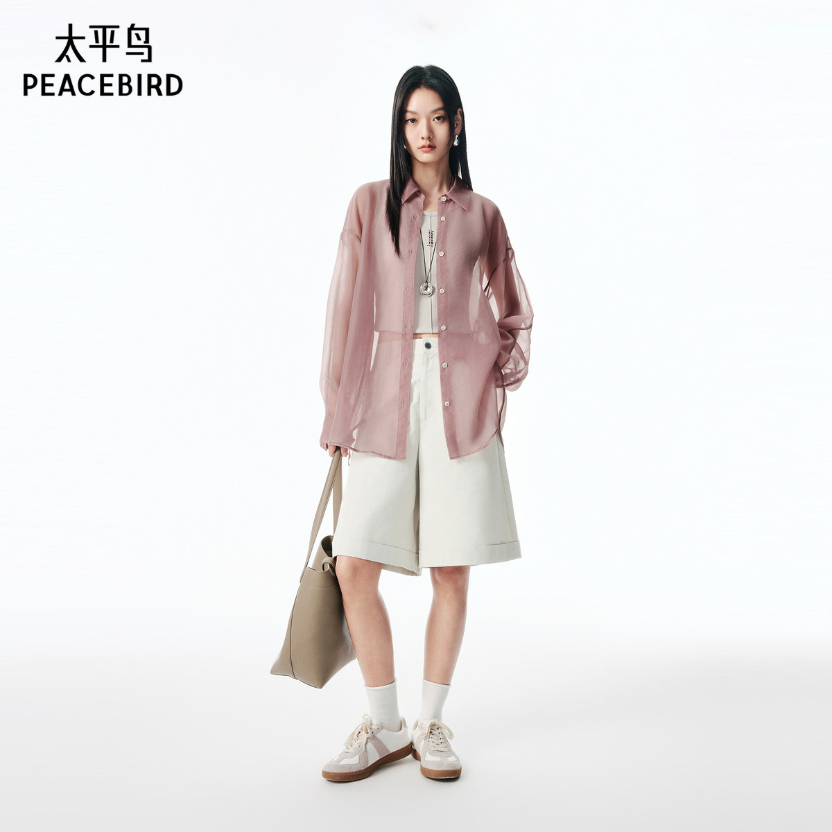 【商场同款】太平鸟25秋季新款欧根纱肌理感长袖衬衫女A1CAF3P11