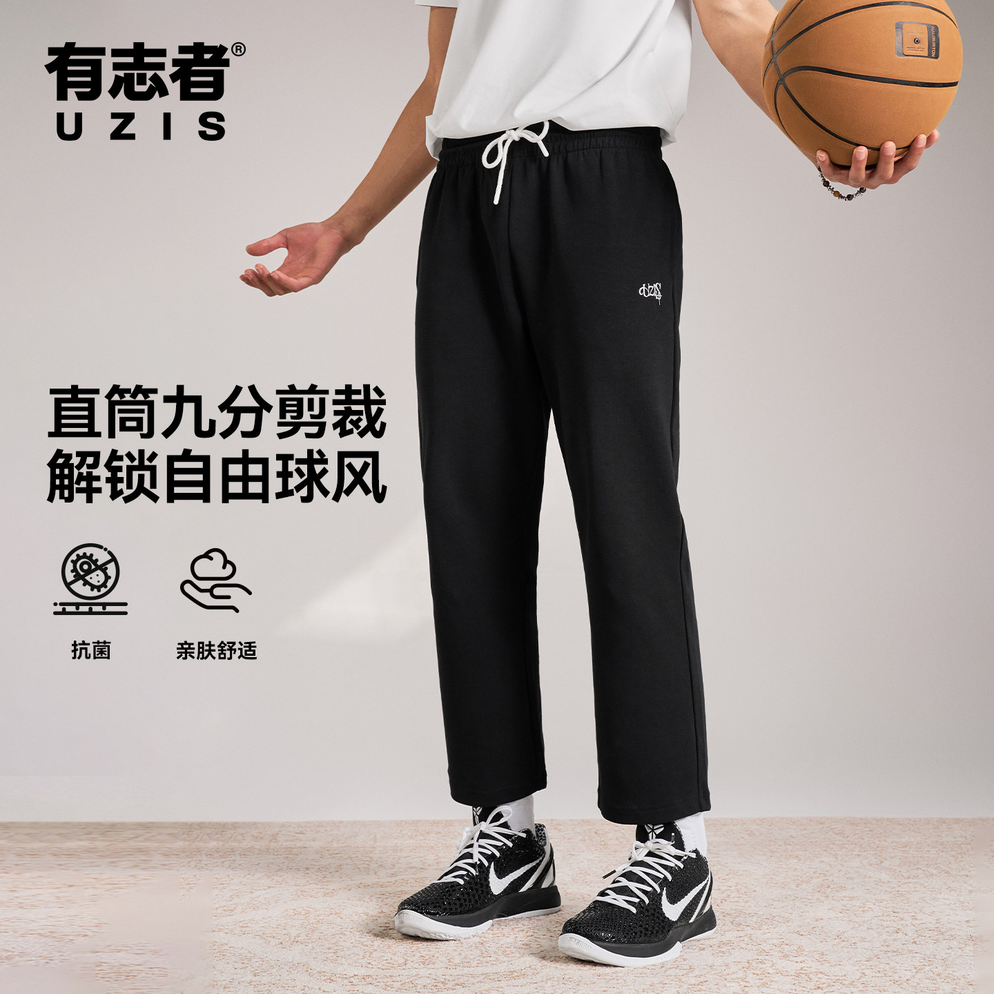 有志者UZIS美式休闲运动长裤子男新款跑步训练直筒九分篮球裤节拍