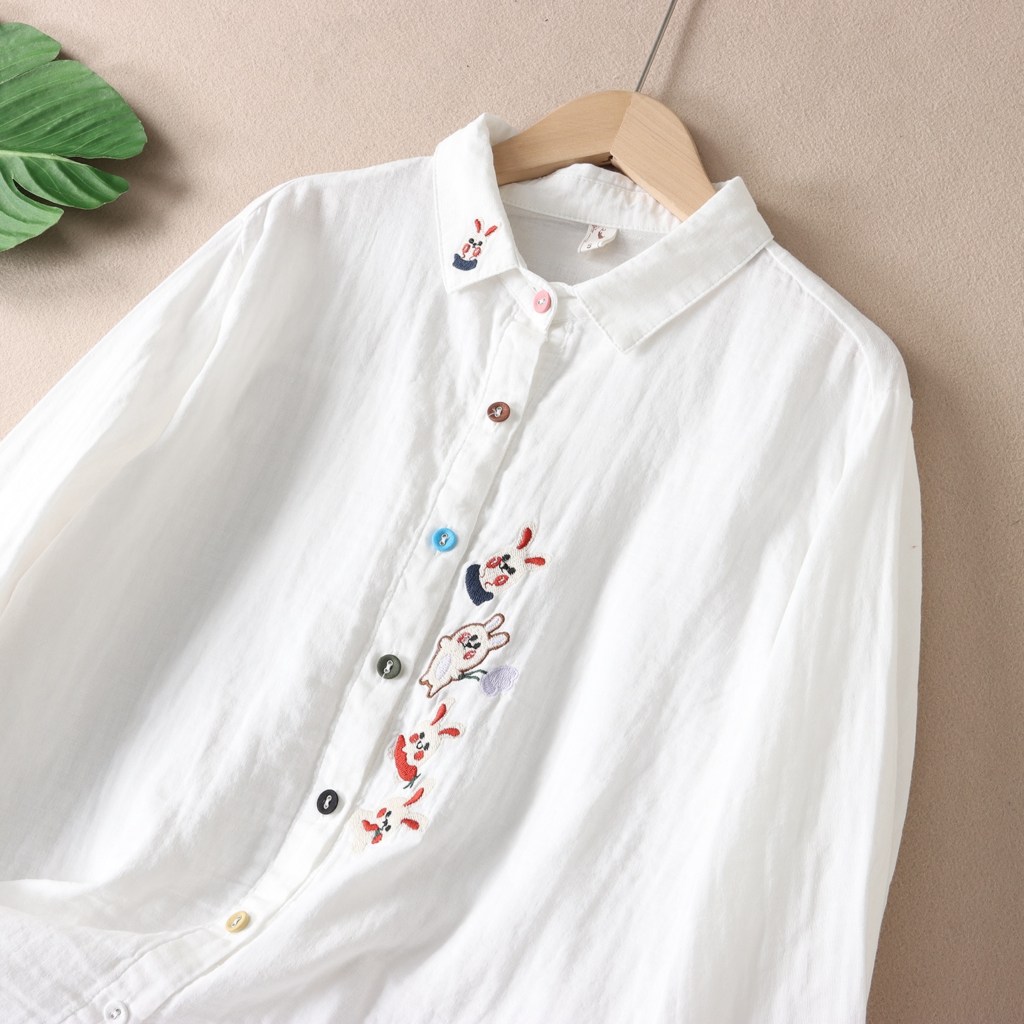俏皮减龄卡通刺绣双层纯棉纱衬衫女春秋文艺长袖打底叠穿衬衣W204
