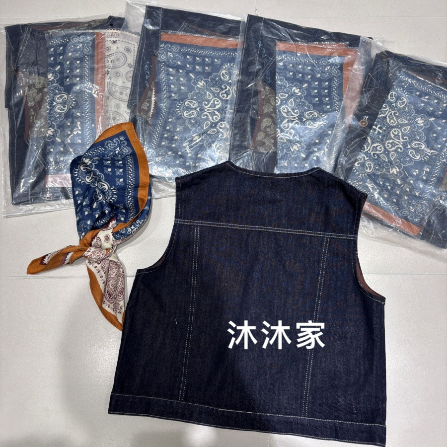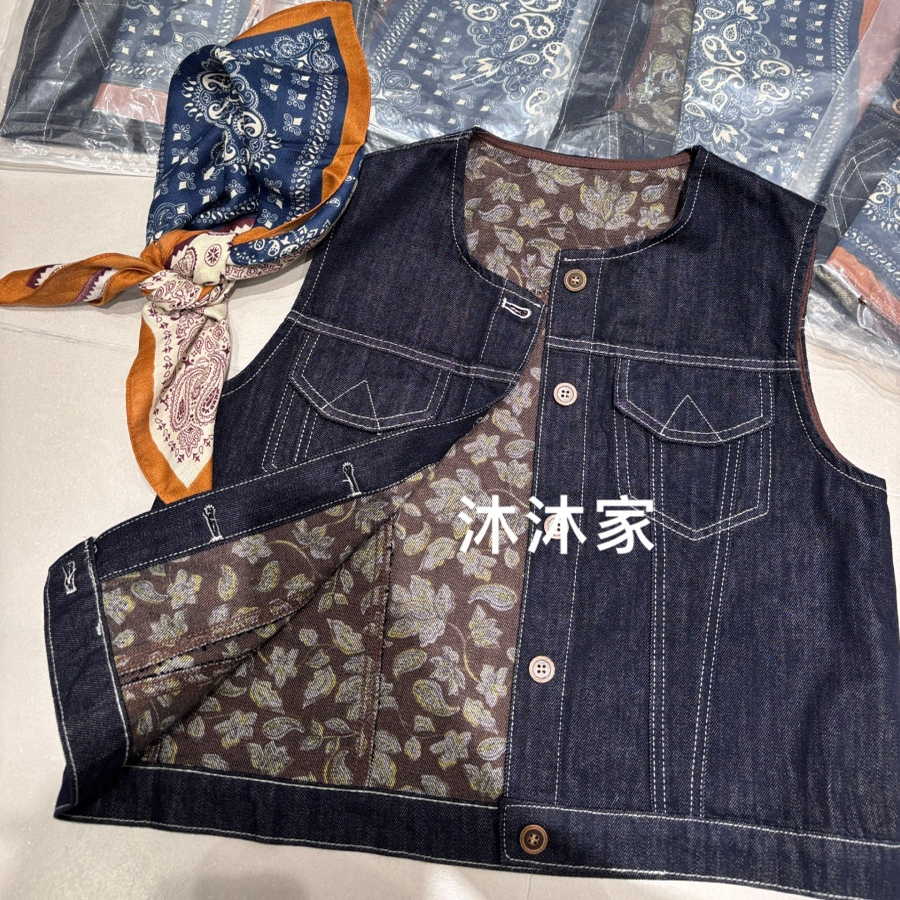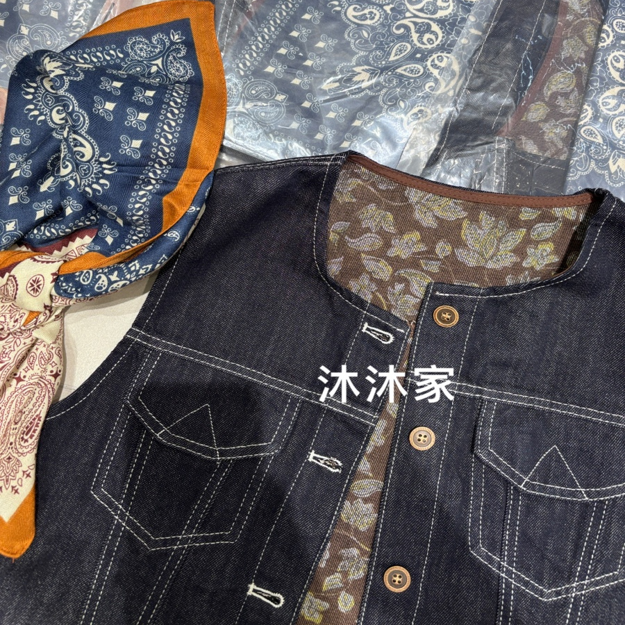 现货欧洲站2025早秋新款圆领单排扣显瘦百搭舒适宽松牛仔马甲外套