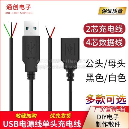 USB电源线单头充电线USB母座带线2芯/4芯鼠标键盘风扇主板连接线
