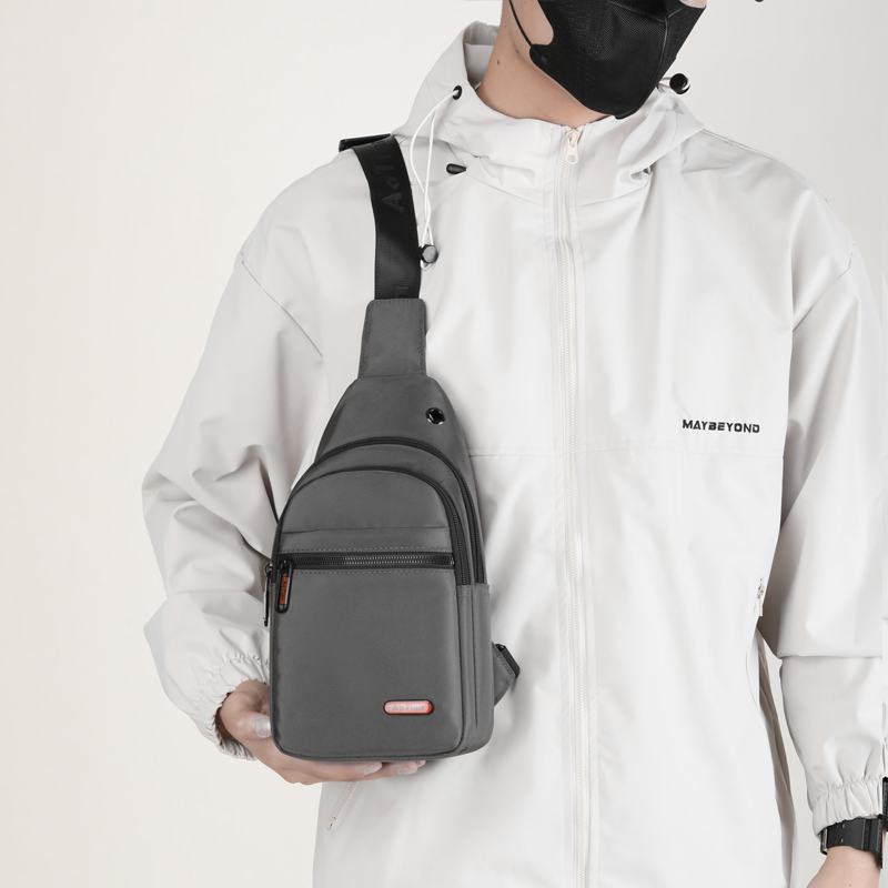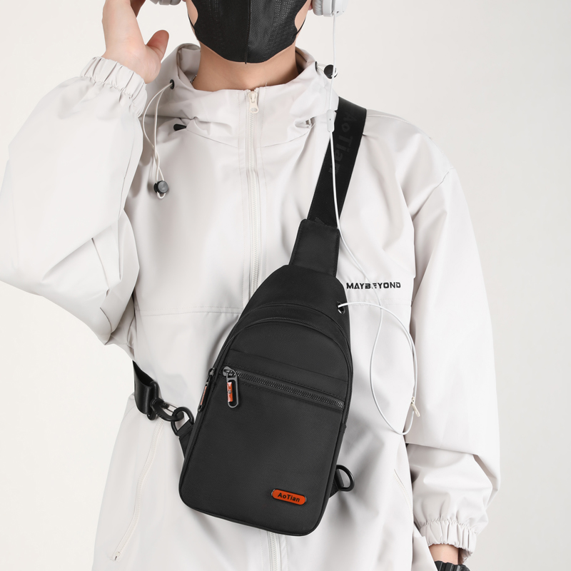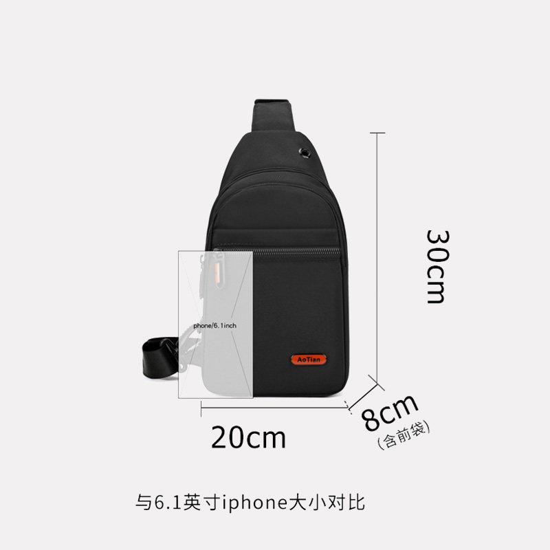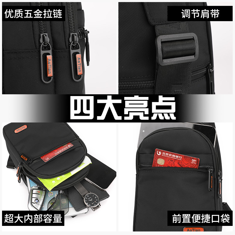 男士胸包斜挎包潮牌胸前包时尚运动黑色牛津布挎包单肩休闲男包