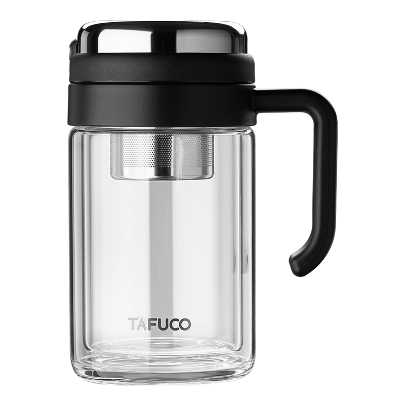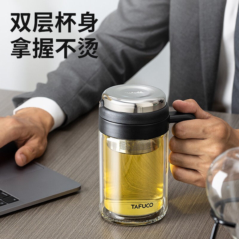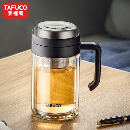 泰福高玻璃杯茶水分离泡茶杯把手杯带盖过滤网办公杯子刻印字6179