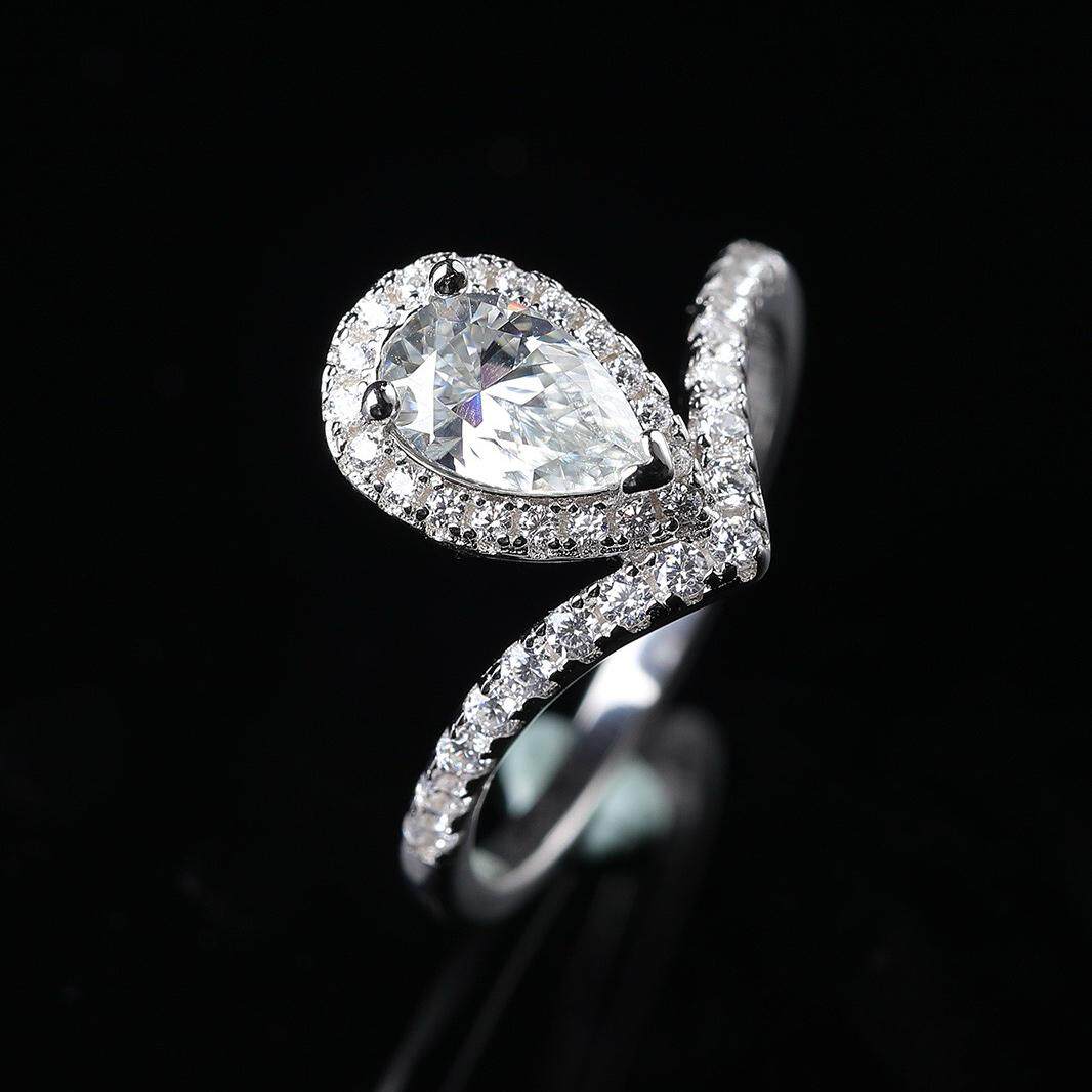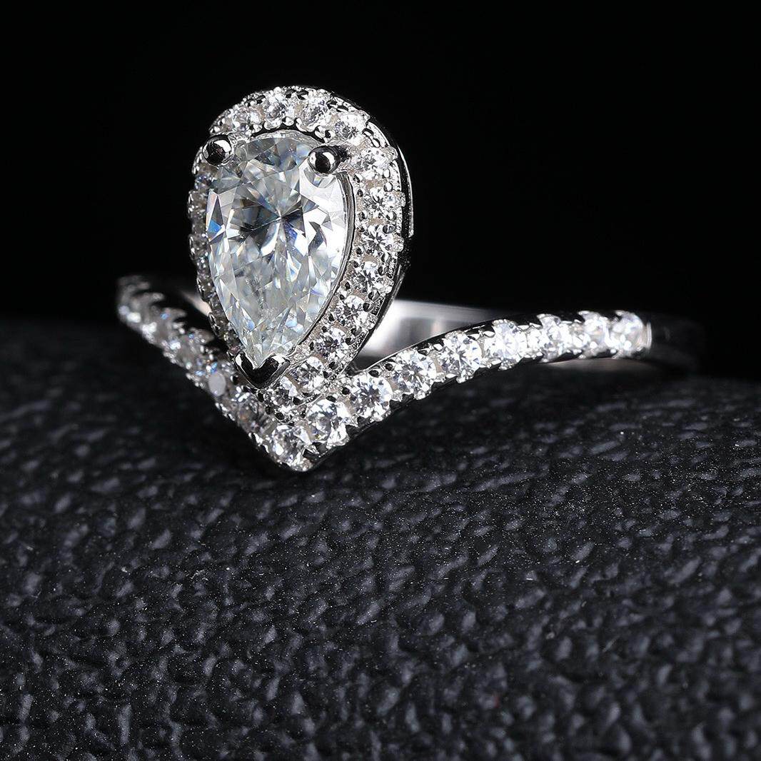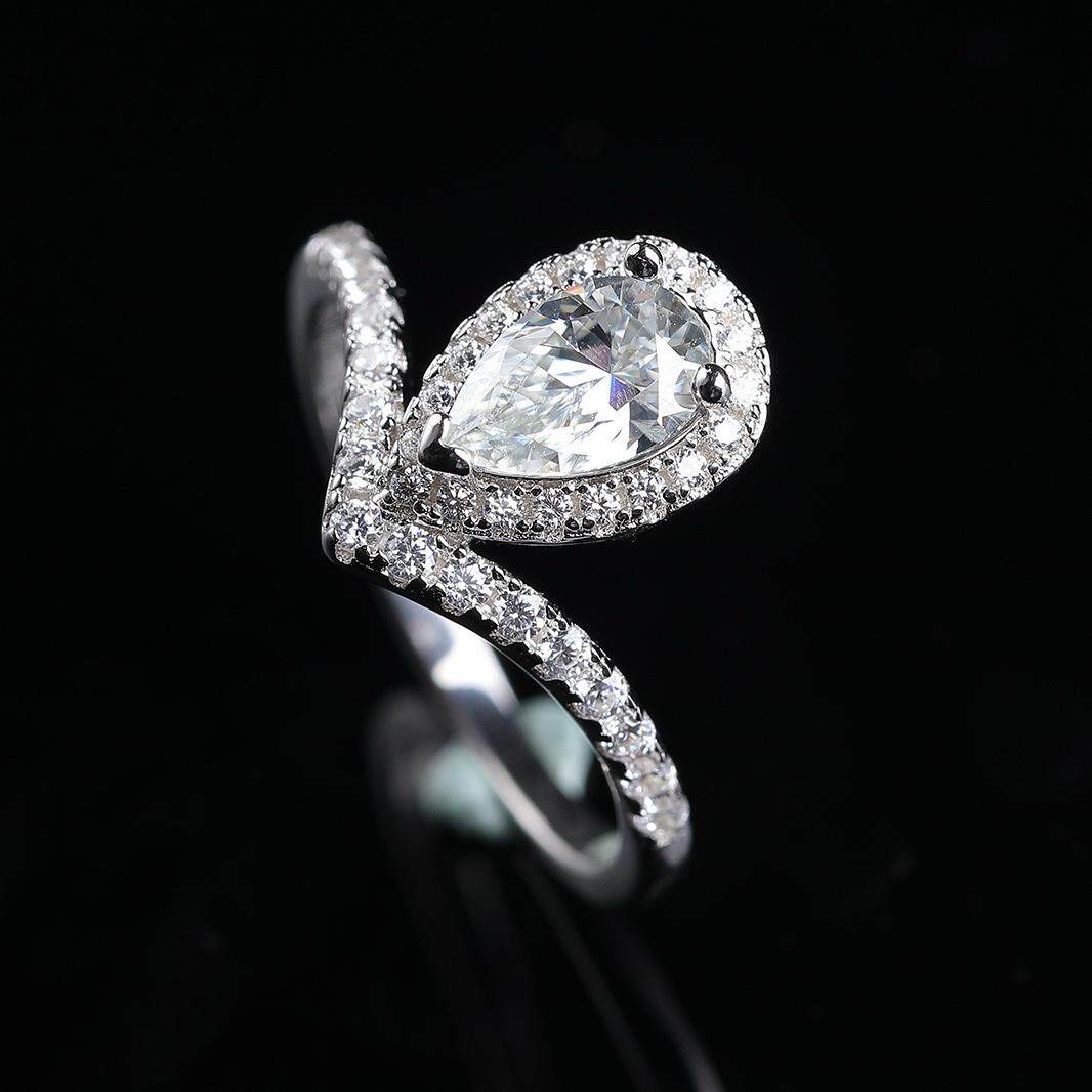 正品D色莫桑钻925纯银尚美皇冠白鹭水滴戒指情侣对戒求婚结婚钻戒