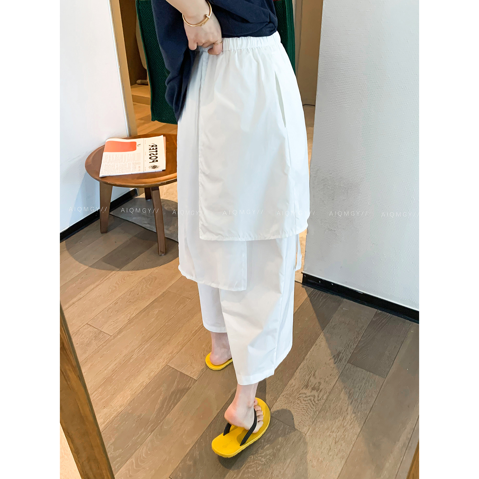 爱情魔鬼鱼 白色设计感不规则休闲裤女2025年夏季小众阔腿九分裤