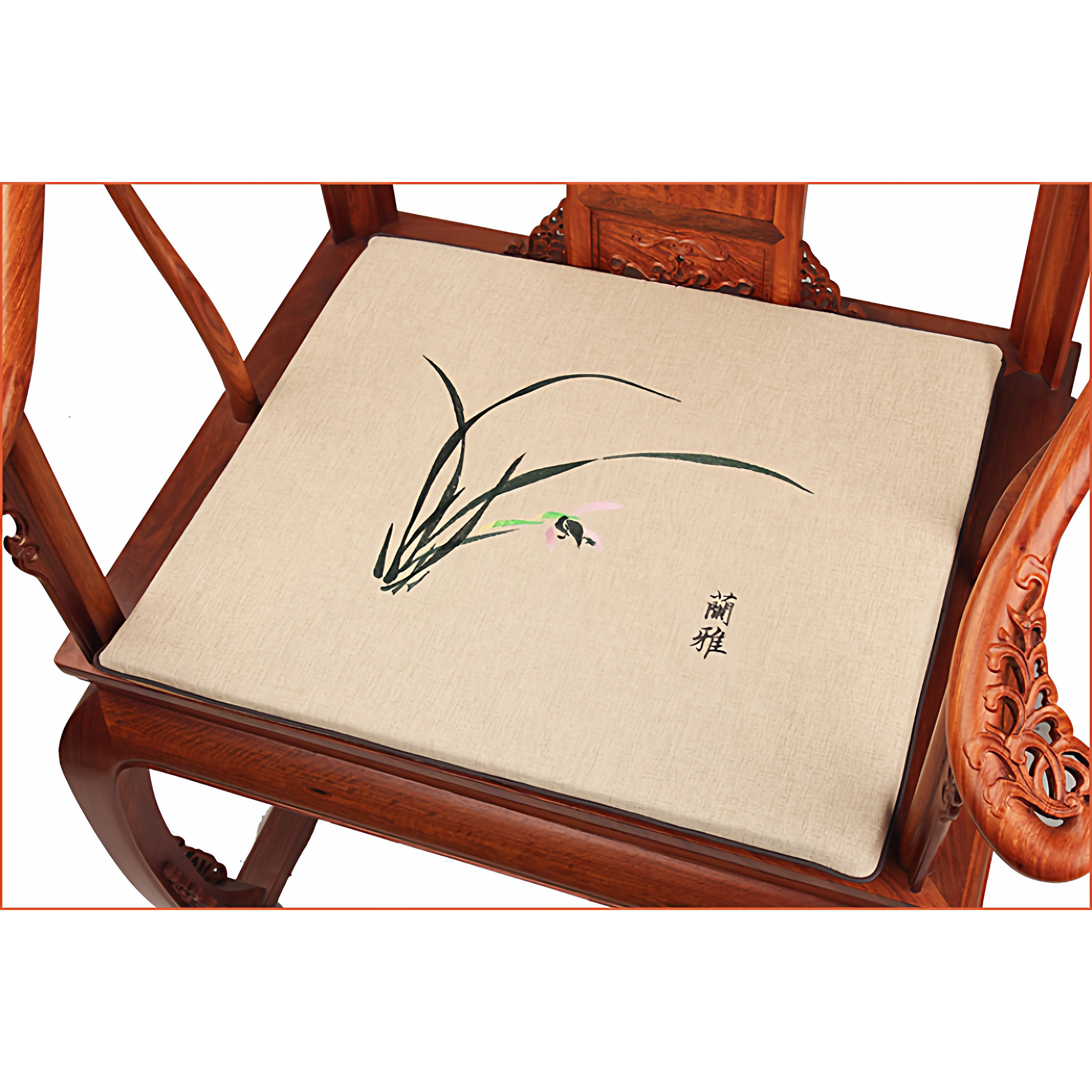 中式麻料中式实木红木椅垫